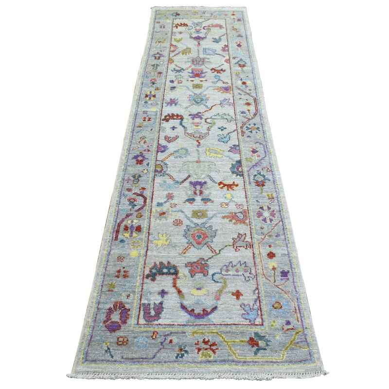 2’5″x9’8″ Silver Gray, Pure Wool Hand Knotted, Afghan Angora Ushak Natural Dyes, Runner Oriental Rug Sh71424