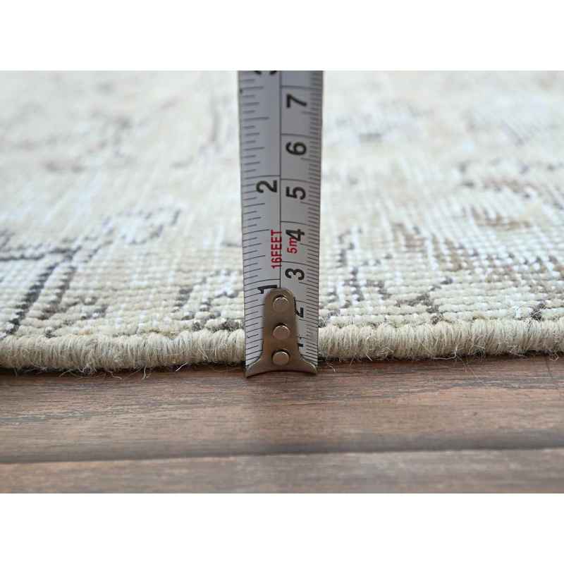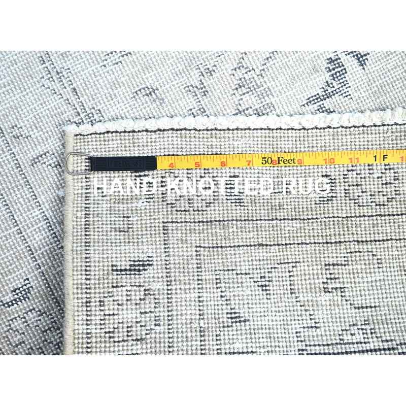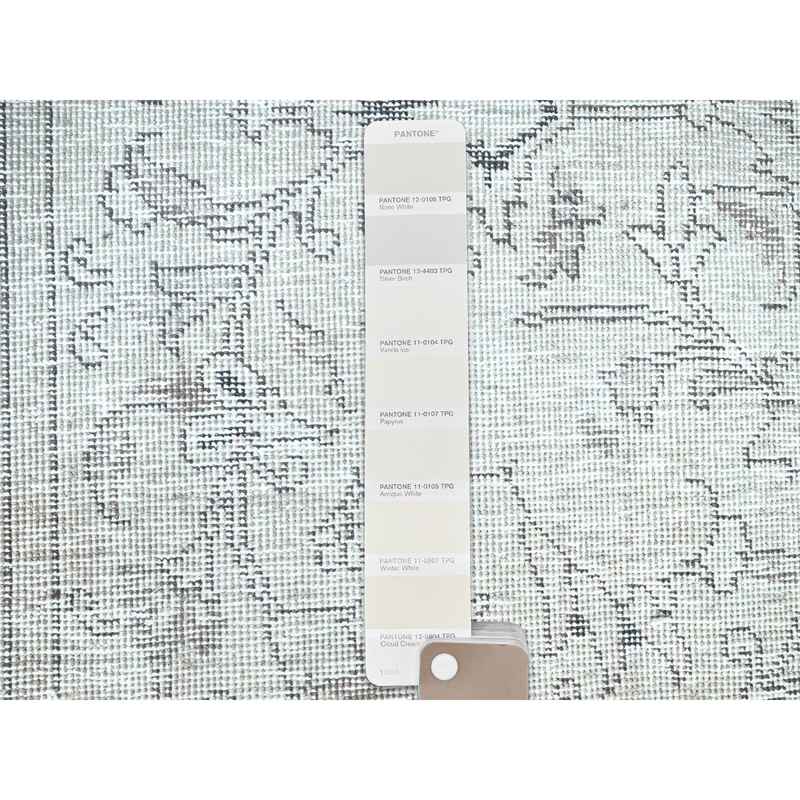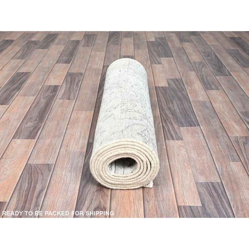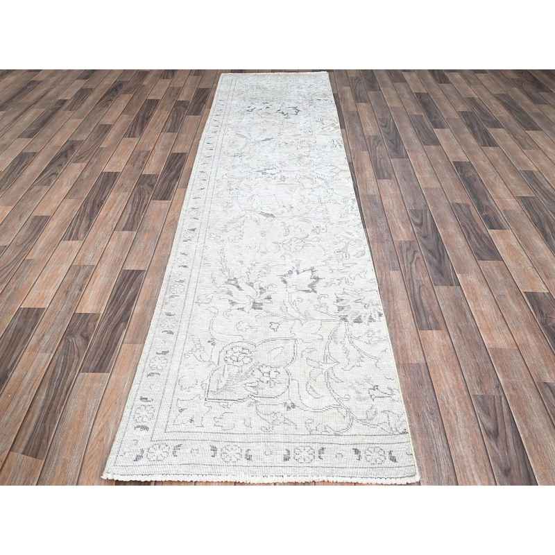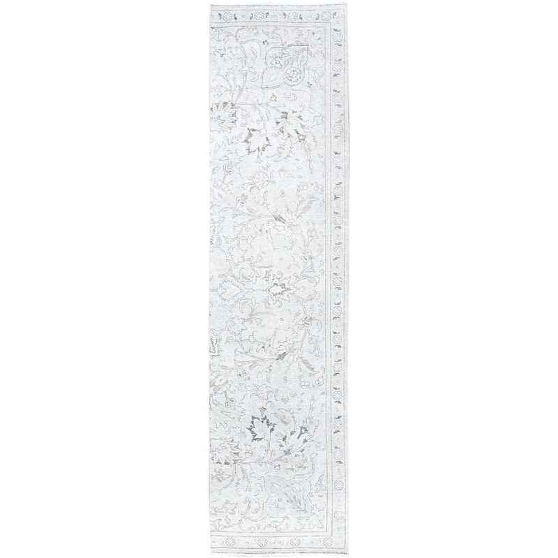 2’6″x10′ Delicate White, Cropped Thin Fragment, Old Persian Tabriz Hand Knotted Pure Wool, Distressed Look, Evenly Worn, Sides and Ends Secured, White Wash Oriental Runner Rug Sh223