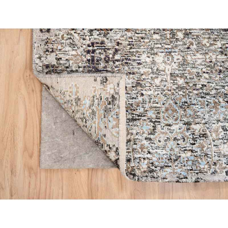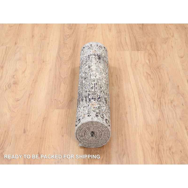 2’6″x10′ Gray, Hand Knotted, Transitional Persian Influence Erased Medallion Design, Silk with Textured Wool, Oriental, Runner Rug Sh63707