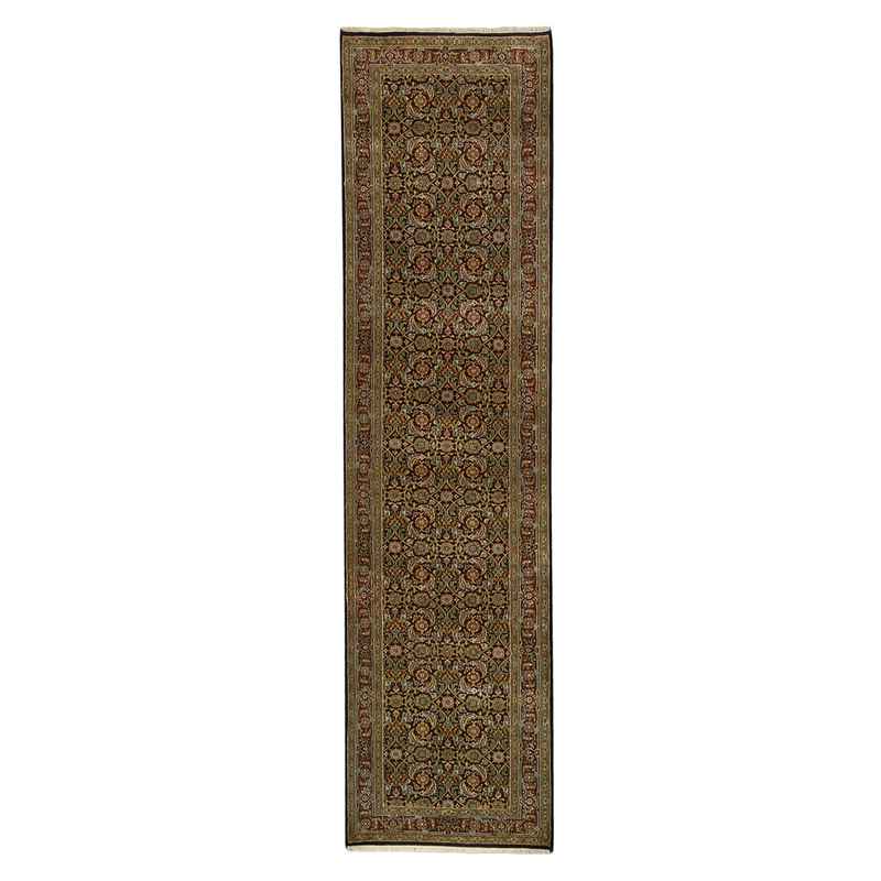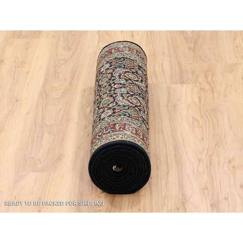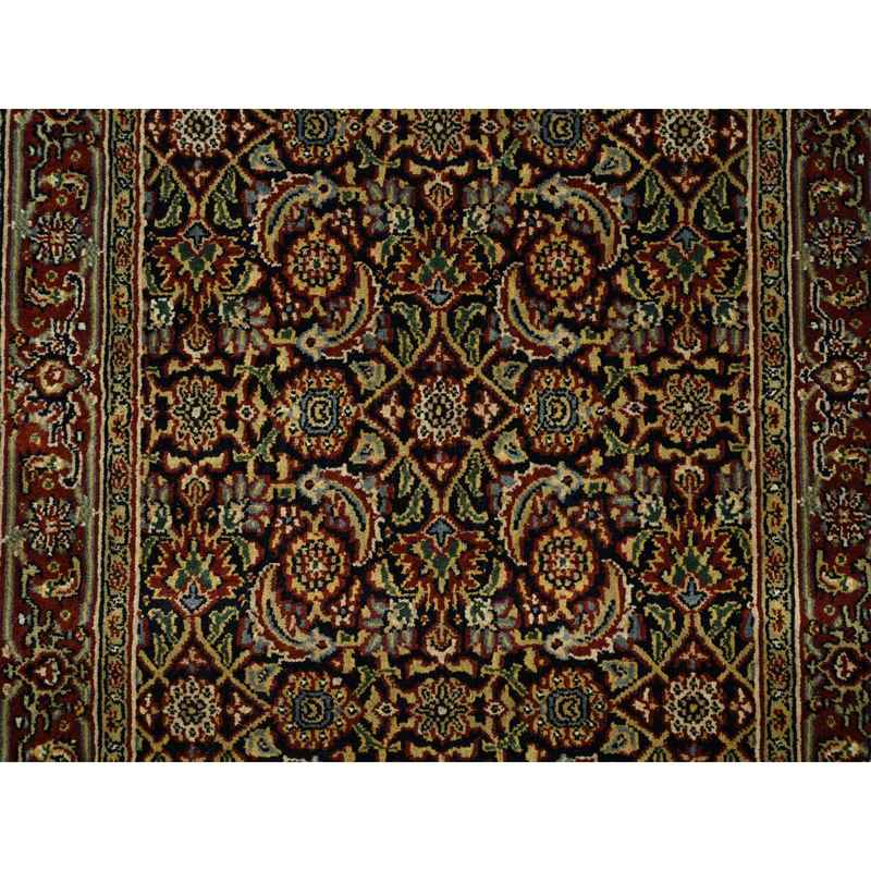 2’6″x10′ Ink Black Herati All Over Fish Design Hand Knotted 250 KPSI Dense Weave Wool Oriental Runner Rug Sh63006