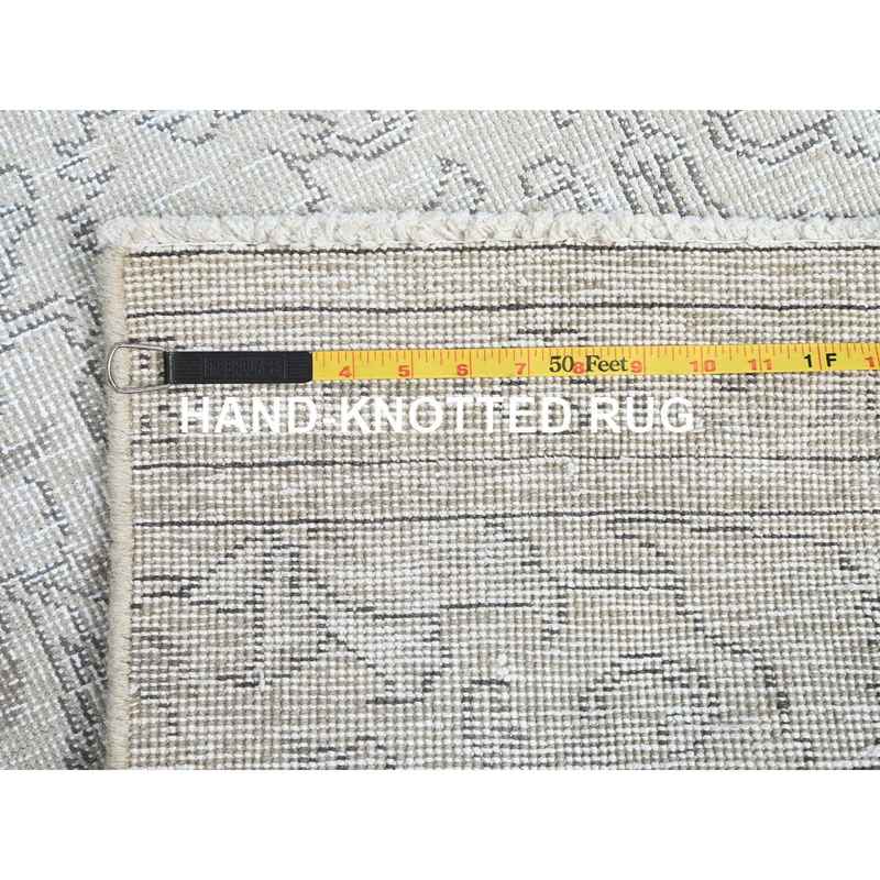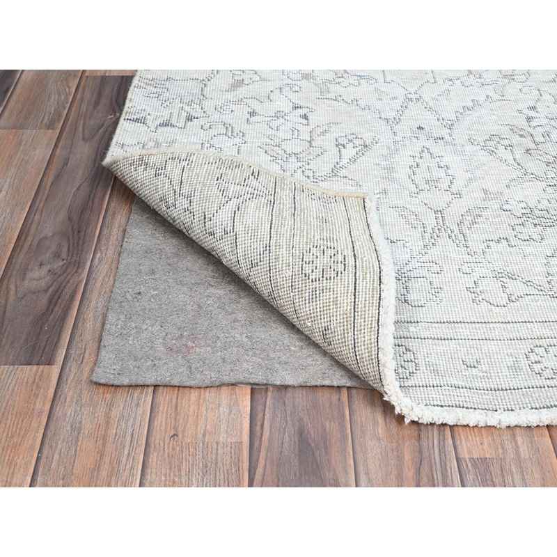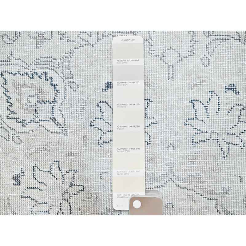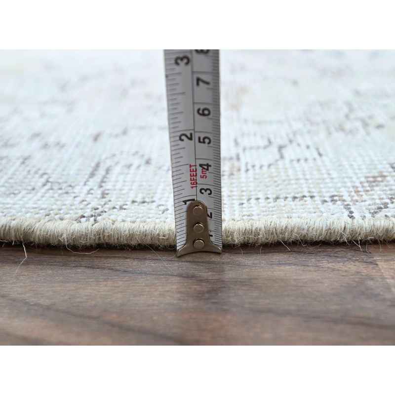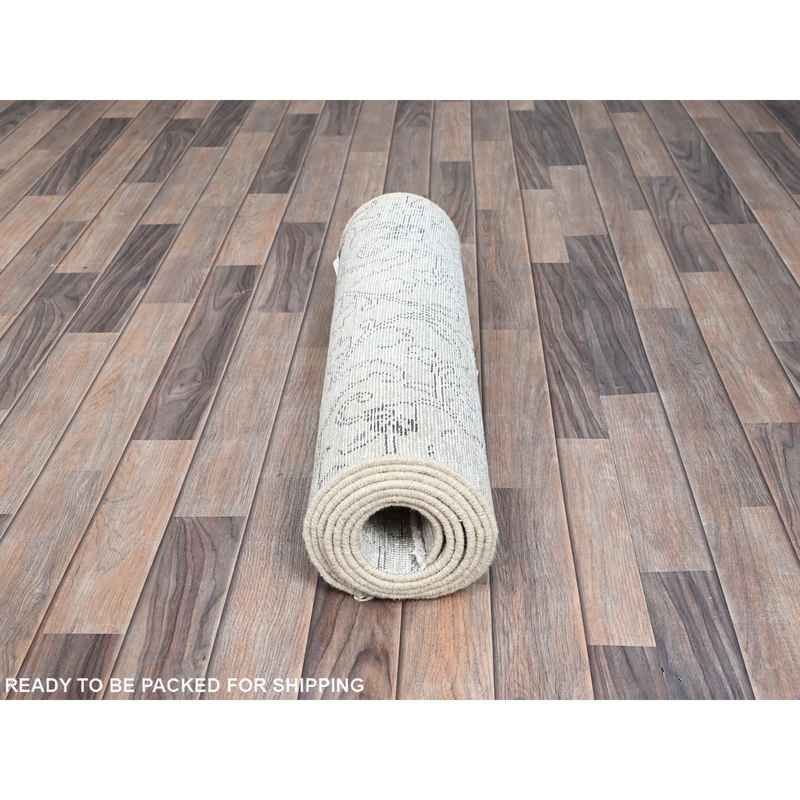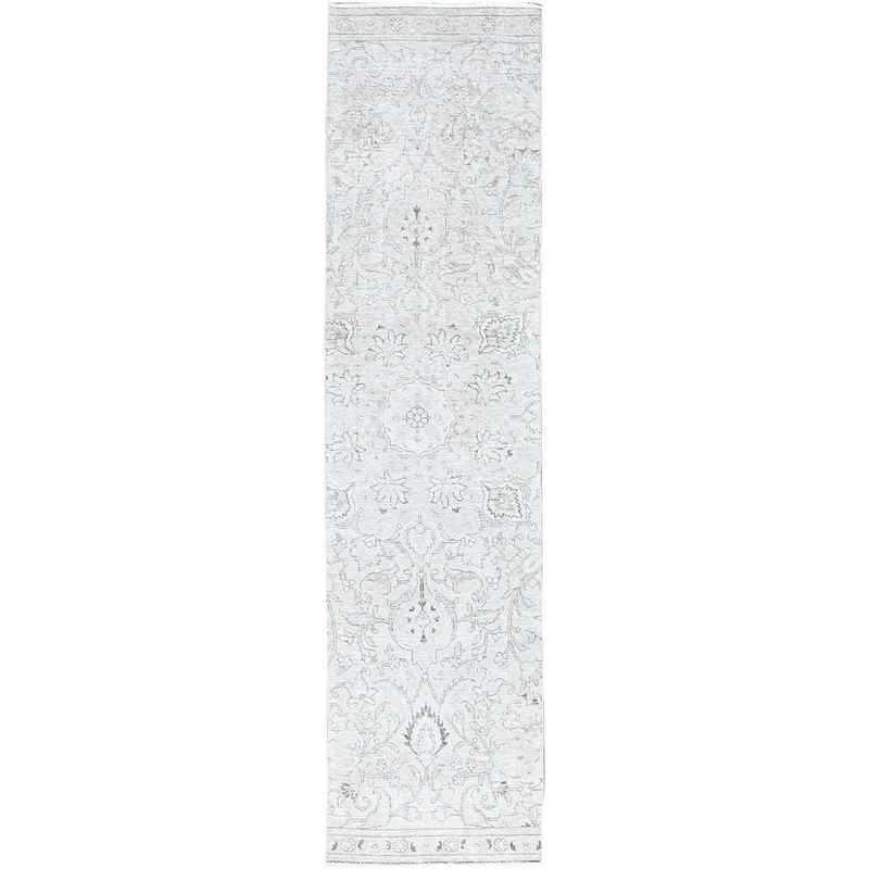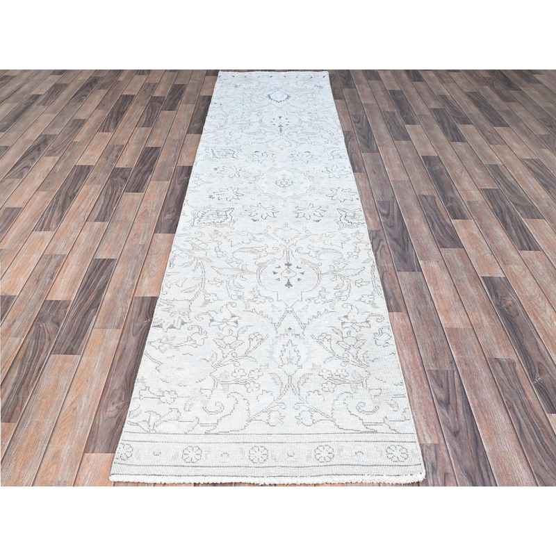 2’6″x10′ Origami White, Hand Knotted Fragment, 100% Wool, Sides and Ends Secured, White Wash Vintage Persian Tabriz Distressed Look, Evenly Worn, Sheared Low Oriental Runner Rug Sh222