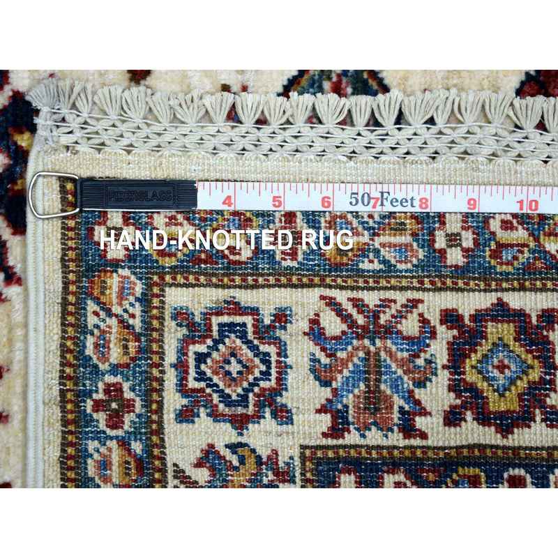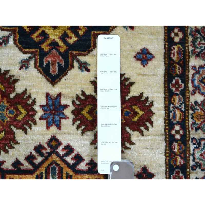 2’6″x12’7″ Ivory Hand Knotted, Afghan Super Kazak with Geometric Medallion Design, Natural Dyes, Pure Wool Runner Oriental Rug Sh71216
