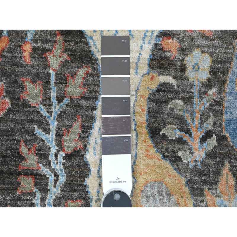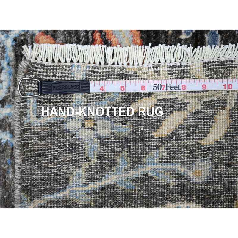 2’6″x17’9″ Graphite Gray, Afghan Peshawar Hand Knotted Organic Wool, Birds of Paradise Design, Natural Dyes, XL Runner Oriental Rug Sh89709