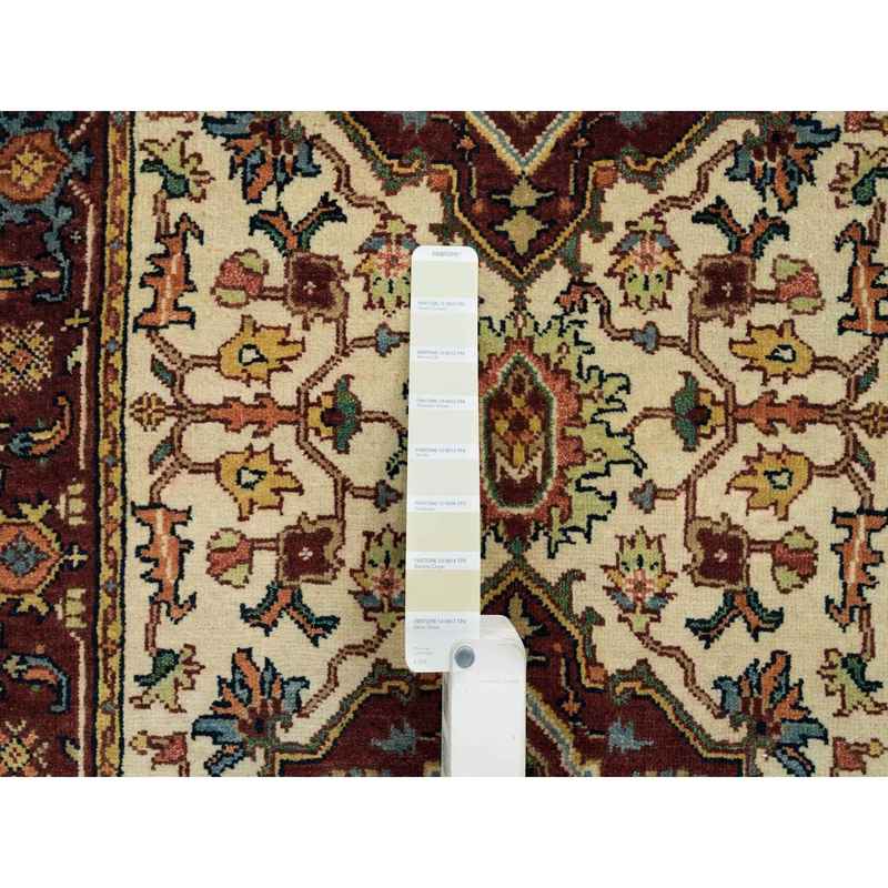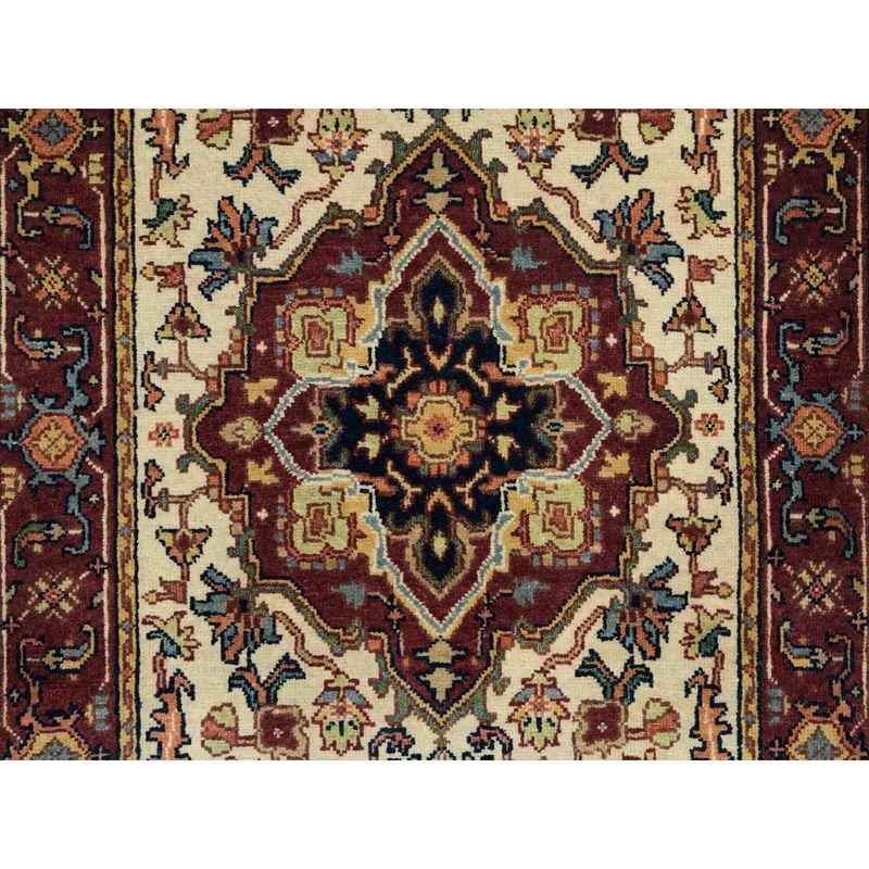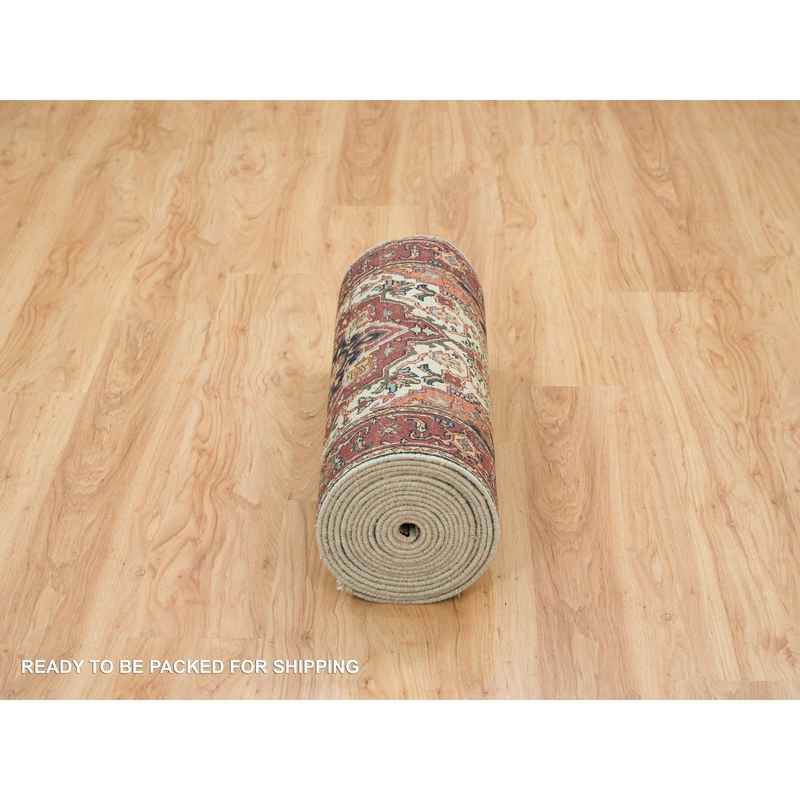 2’6″x22′ Ivory, Antiqued Fine Heriz, Re-Creation, Hand Knotted, Natural Wool, XL Runner Oriental Rug Sh65505
