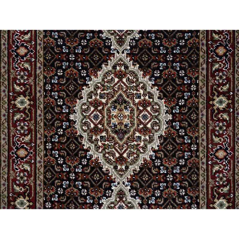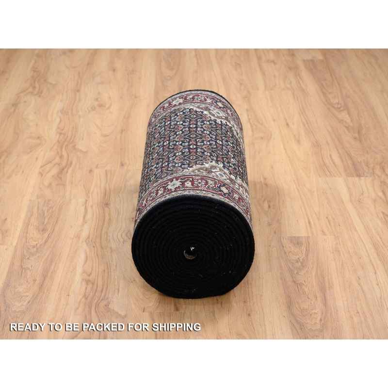 2’6″x26’3″ Rich Black Hand Knotted 175 KPSI Tabriz Mahi with Fish Medallion Design, Pure Wool XL Runner Oriental Rug Sh64094