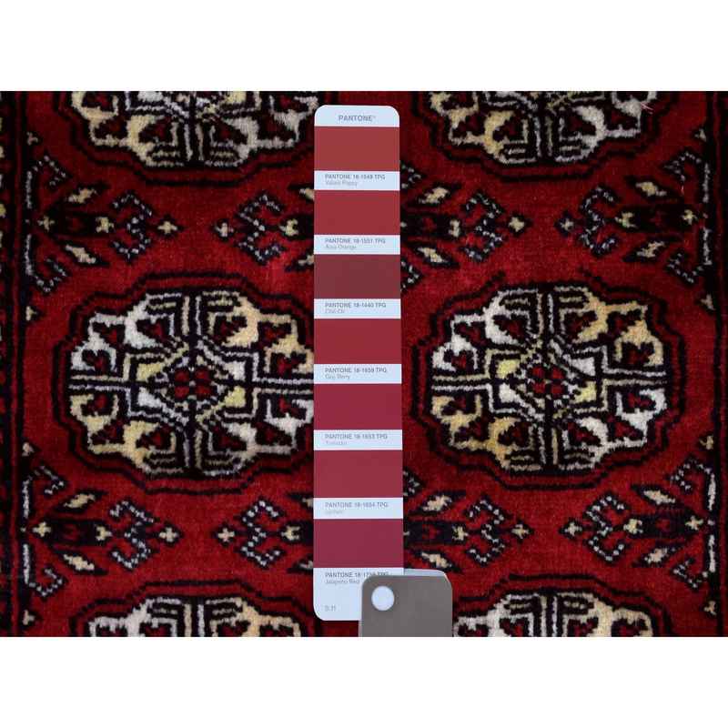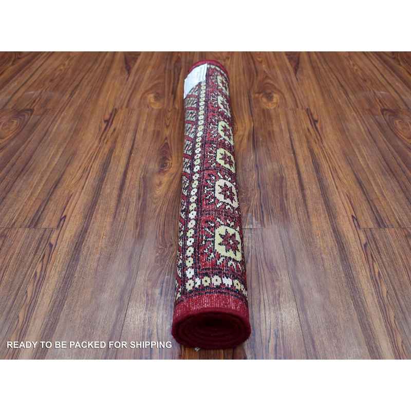 2’6″x3’10” Hand Knotted Mori Bokara with Geometric Medallions Design Deep Red Pure Wool Oriental Rug Sh69441