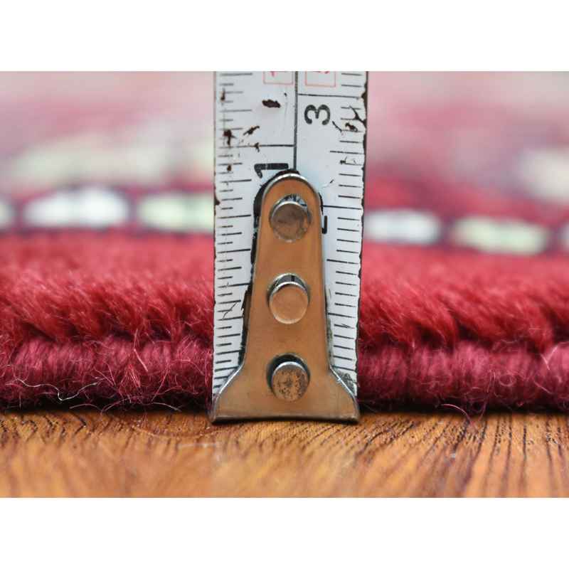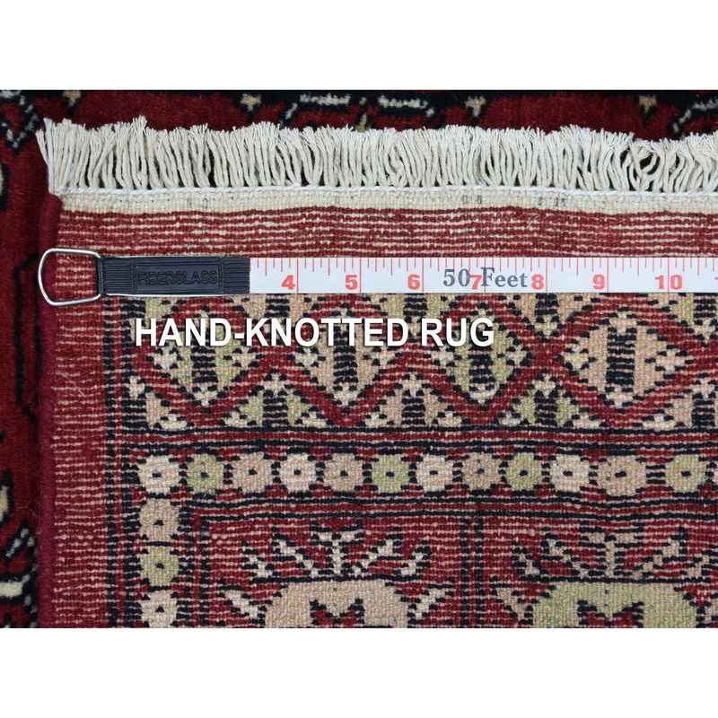 2’6″x4’4″ Rich Red Soft Wool Hand Knotted Mori Bokara with Geometric Medallions Design Oriental Rug Sh69448