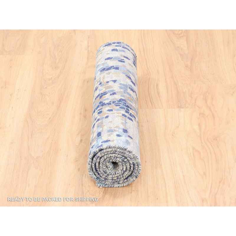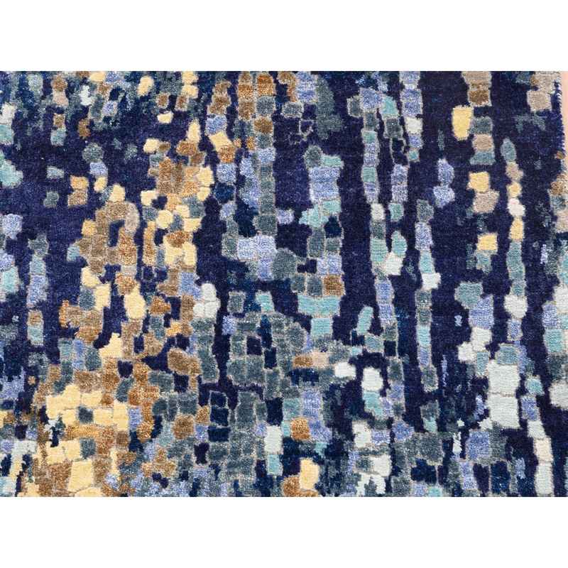 2’6″x5’10” Hand Knotted Blue Mosaic Design Wool and Silk Persian Knot Oriental Runner Rug Sh62661