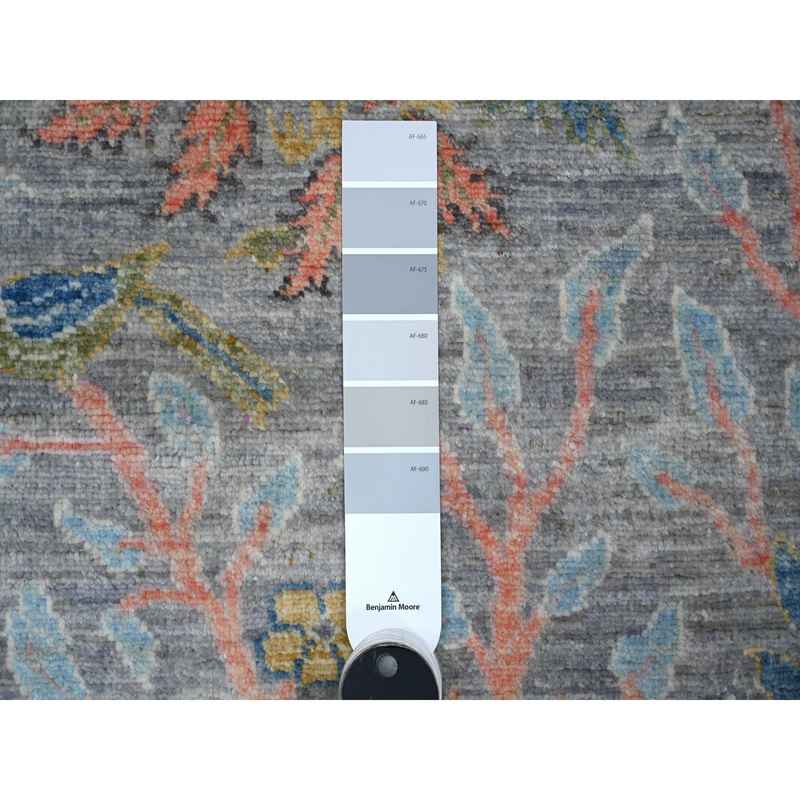 2’6″x5’9″ Dolphin Gray, Hand Knotted Natural Wool, Afghan Peshawar with Birds of Paradise, Vegetable Dyes, Runner Oriental Rug Sh89165