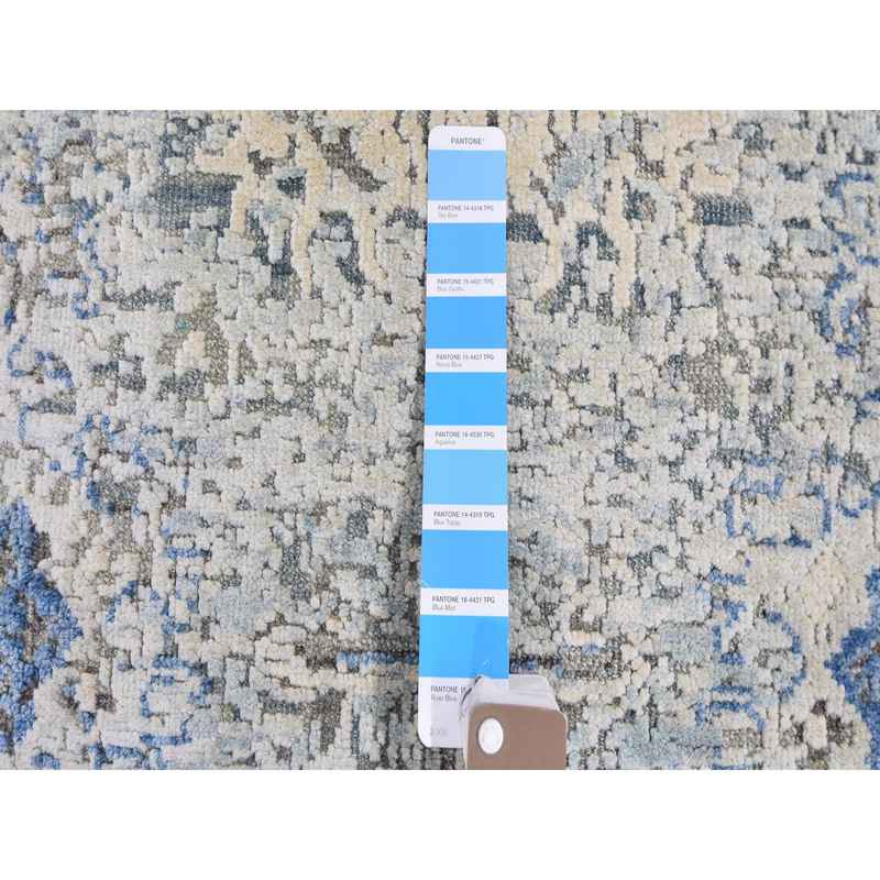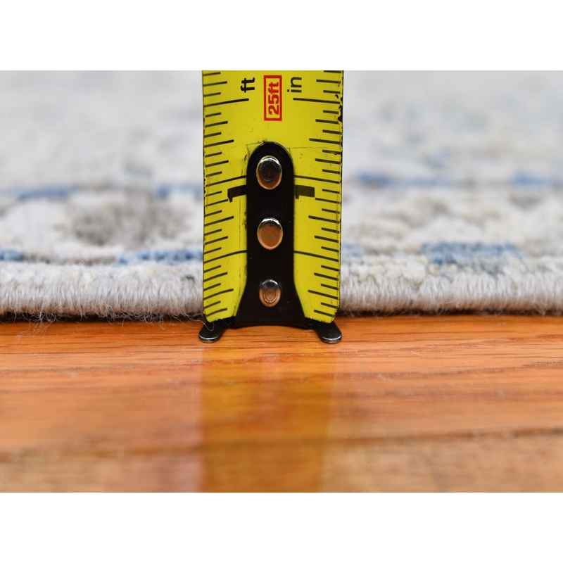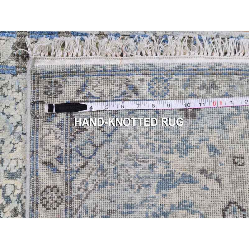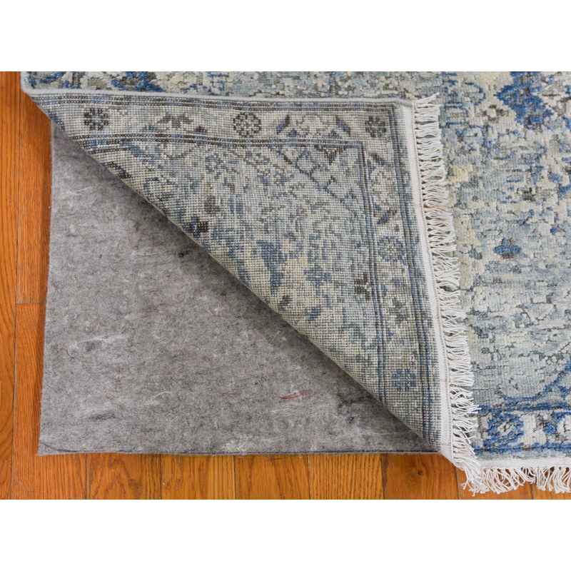 2’6″x6′ Blue Distressed Oushak Pure Silk with Textured Wool Wide Runner Hand Knotted Oriental Rug Sh59743