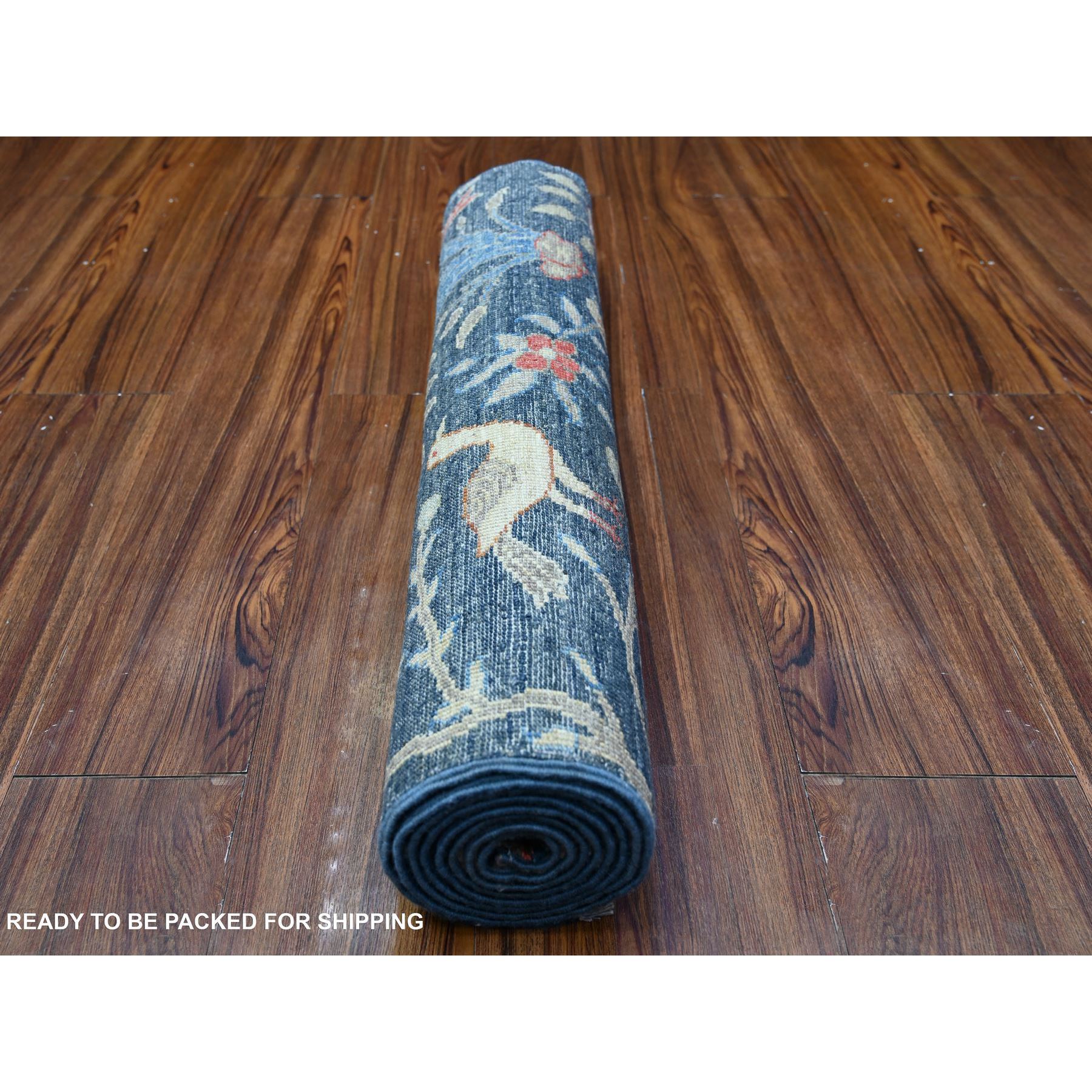 2’6″x7’10” Millennium Blue, Afghan Peshawar with Birds of Paradise, Hand Knotted, Natural Dyes, Pure Wool, Runner, Oriental Rug Sh88503