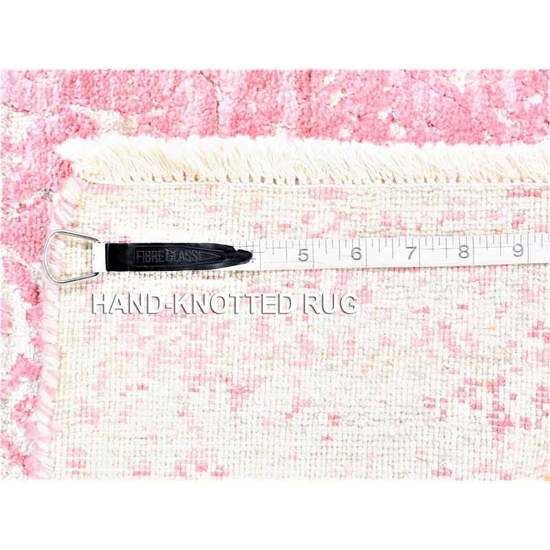 2’6″x7’9″ Hot Pink, Broken Persian Design Tone on Tone, Wool and Pure Silk Hand Knotted, Runner Oriental Rug Sh80252