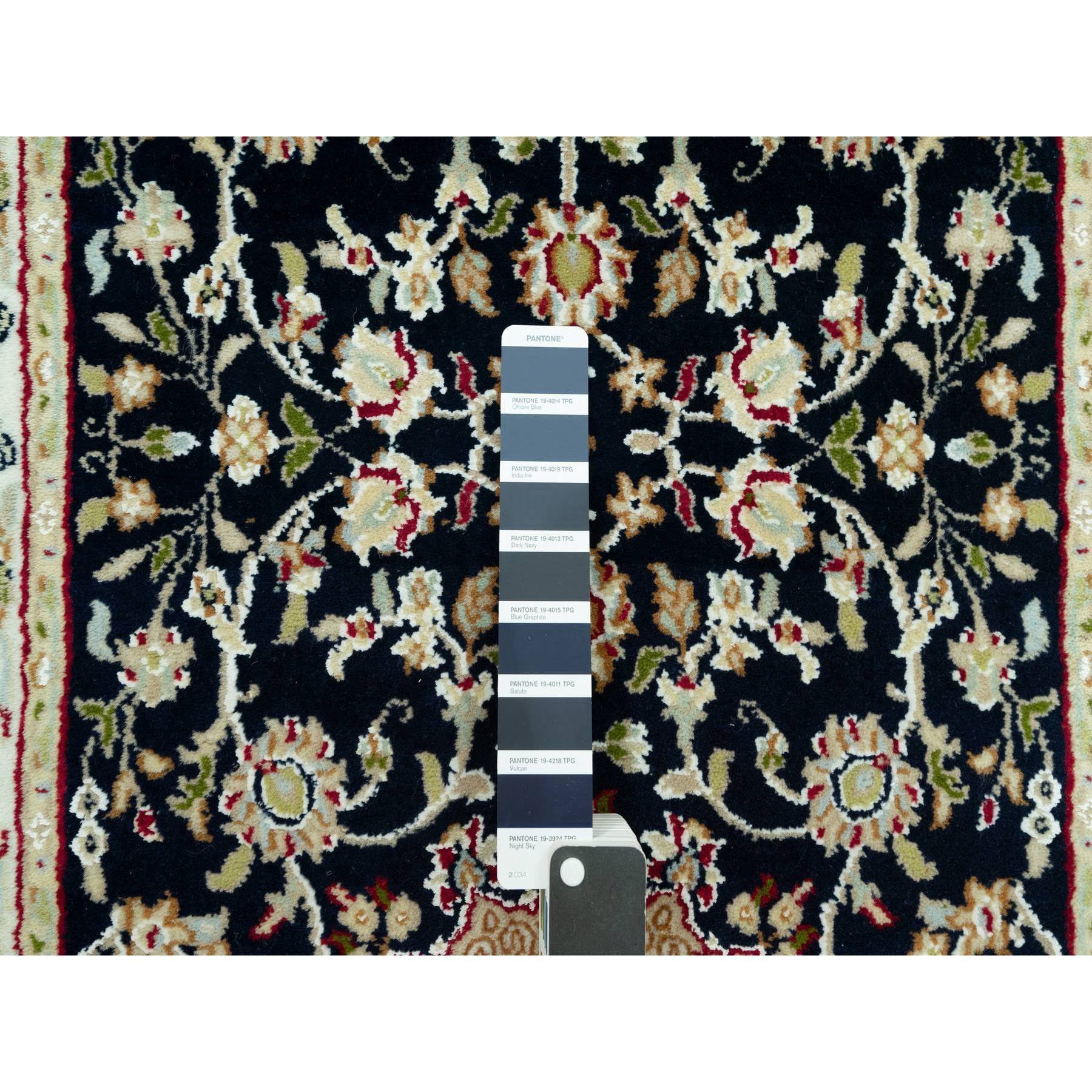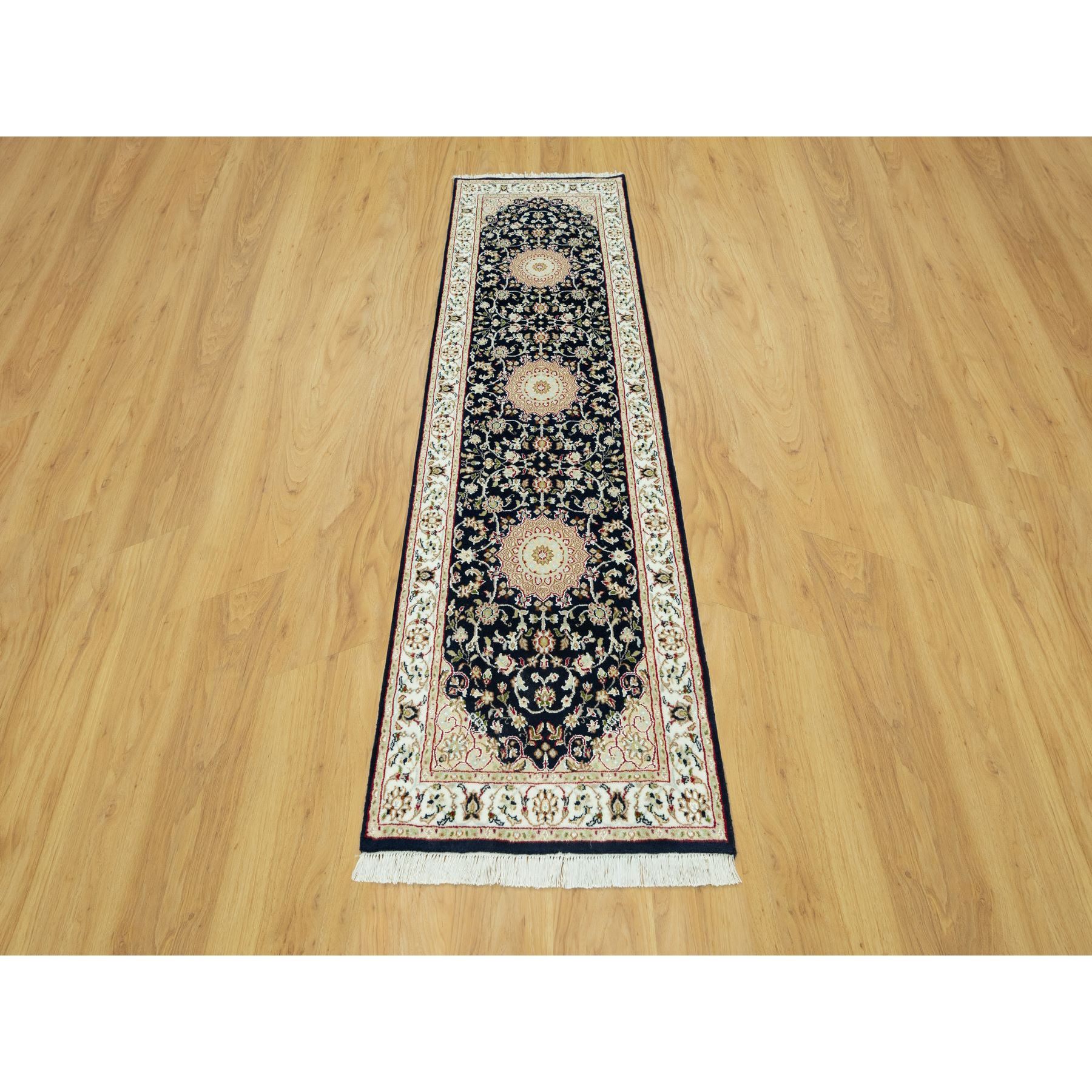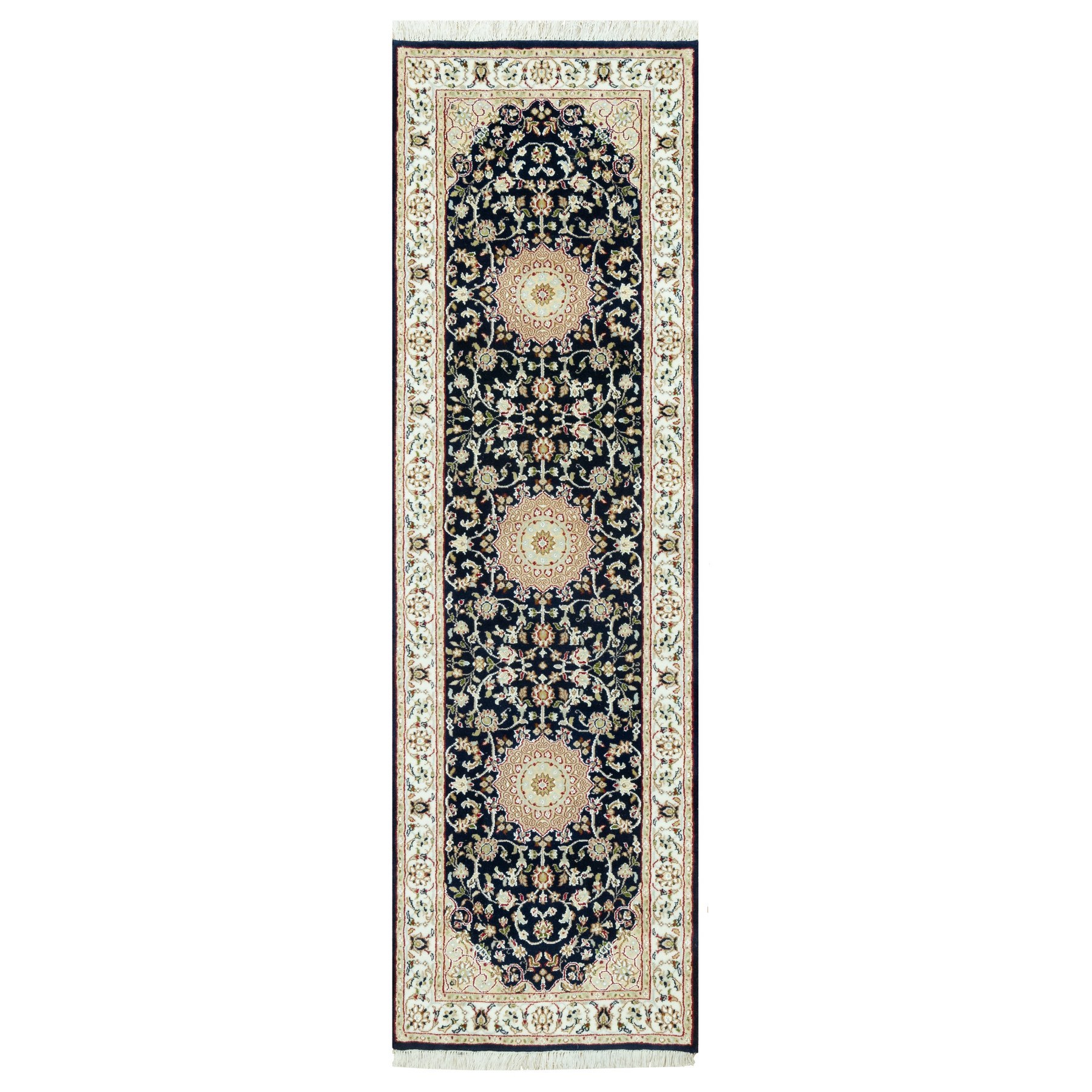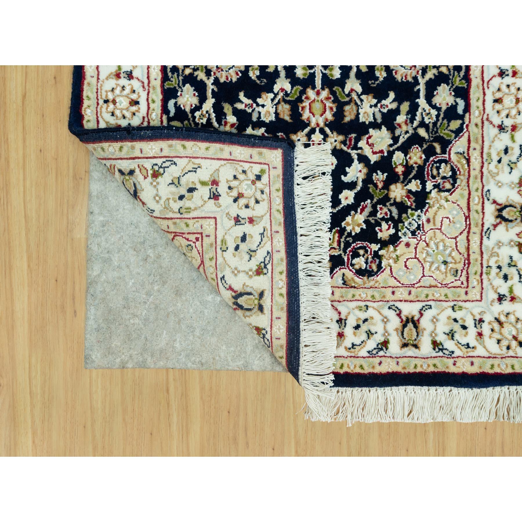 2’6″x8’4″ Naval Blue, Beige Corners, Denser Weave Nain Center Medallion Flower Design, Hand Knotted 100% Wool, Runner Oriental 250 KPSI Rug Sh90586