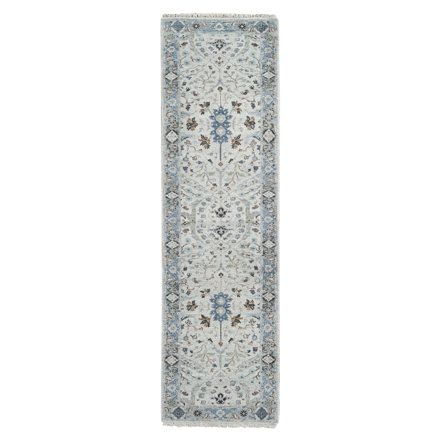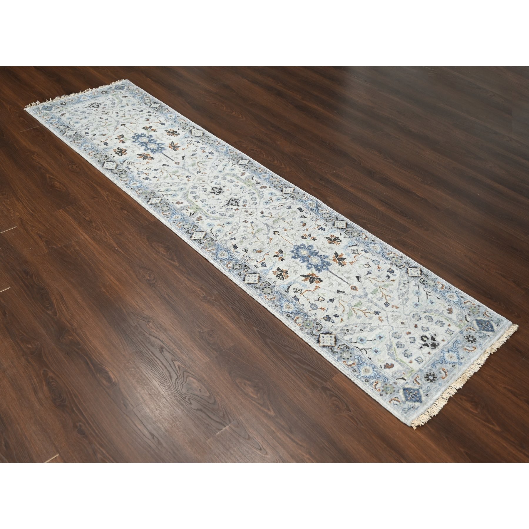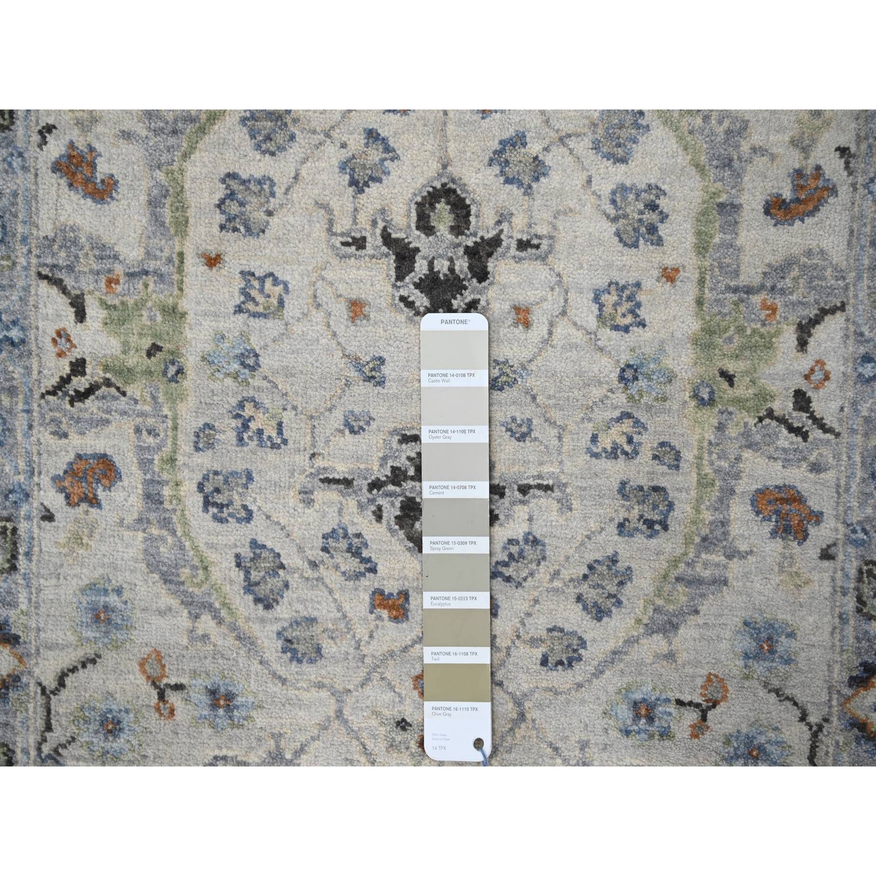 2’6″x9’10” Owl and Slate Gray, Hand Knotted Oushak Dense Weave Design with Floral Motifs, Vegetable Dyes, Natural Wool, Runner Oriental Rug Sh84786
