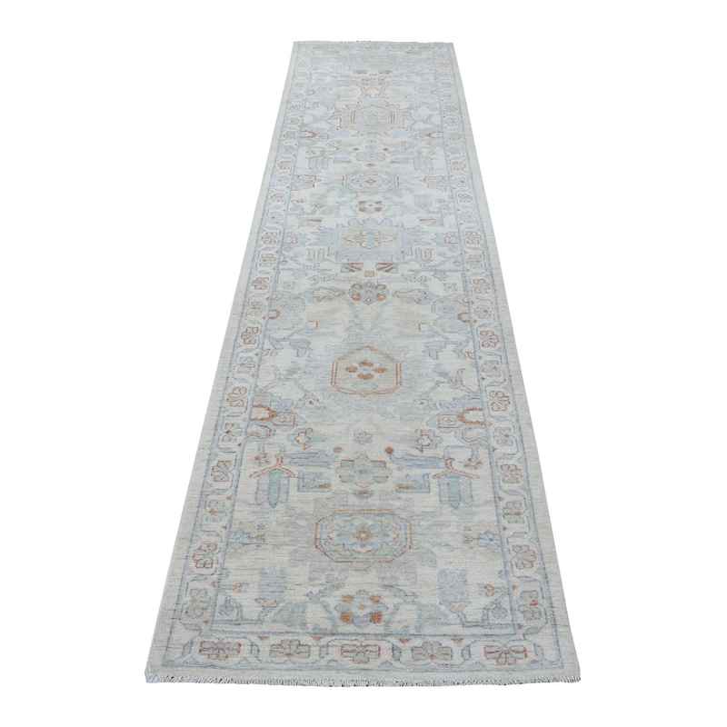 2’6″x9’10” White Wash Peshawar 100% Wool Hand Knotted Runner Oriental Rug Sh55147