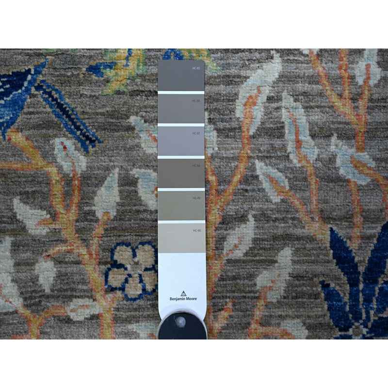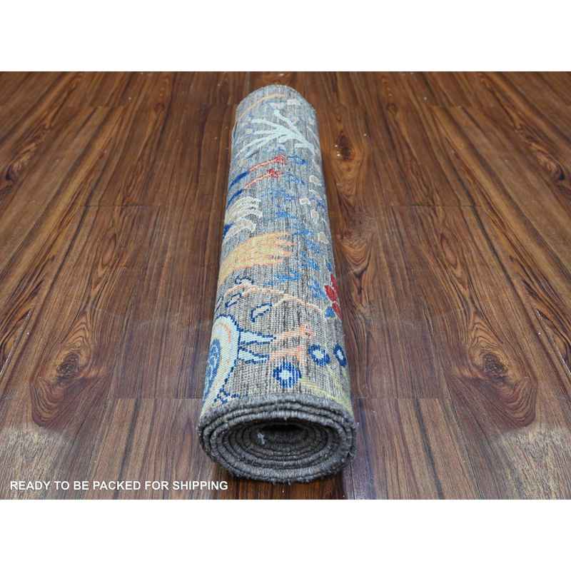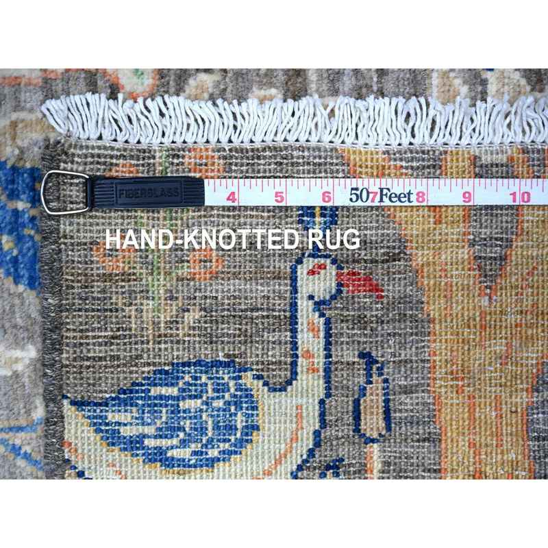 2’6″x9’7″ Battleship Gray, Hand Knotted, Vegetable Dyes, Pure Wool, Afghan Peshawar with Birds of Paradise, Runner, Oriental Rug Sh88228