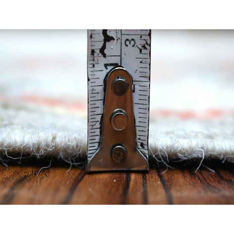 2’6″x9’7″ Gray, Afghan Angora Oushak with Pop of Colors, Hand Knotted, Extra Soft Wool Runner Oriental Rug Sh71166