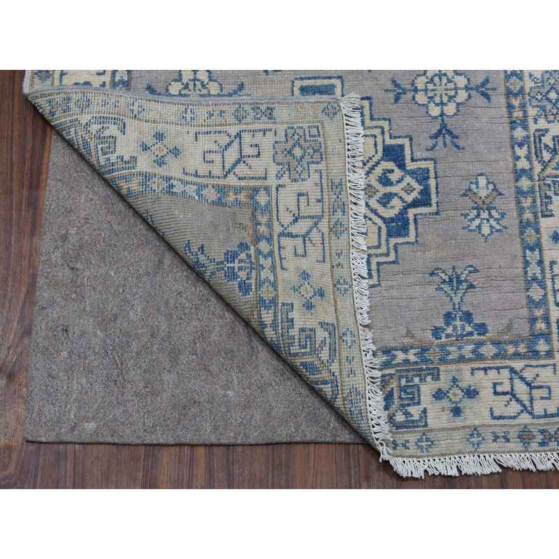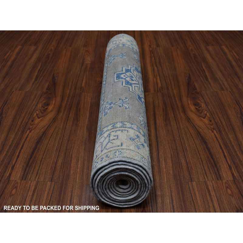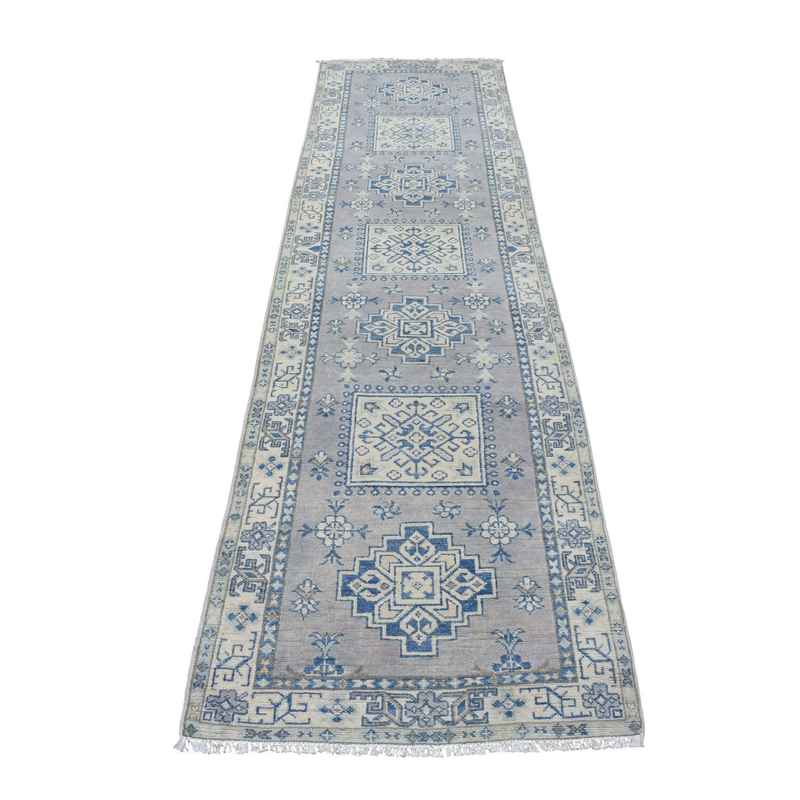 2’6″x9’7″ Gray Wide Runner Natural Wool Afghan Vintage Look Kazak Hand Knotted Oriental Rug Sh54855
