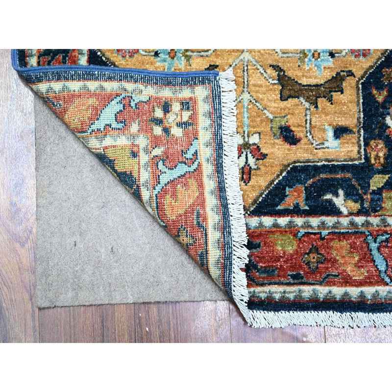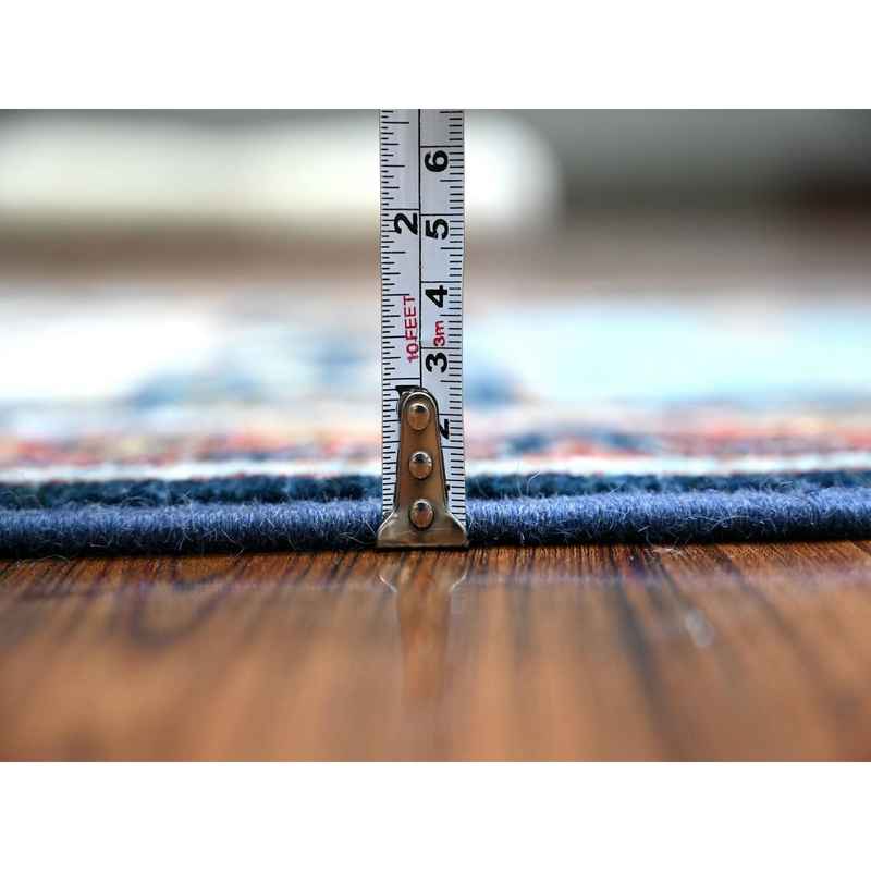 2’6″x9’8″ Passport Blue with Harvard Crimson Red, Caucasian Akstafa Design, Fine Aryana, Pure Wool, Hand Knotted, Runner Oriental Rug Sh88623