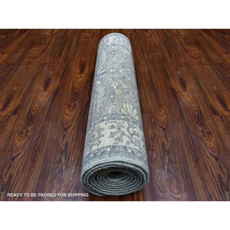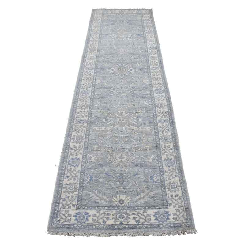2’6″x9’9″ Hand Knotted Gray Afghan Peshawar with All Over Heriz Design Extra Soft Wool Oriental Runner Rug Sh68596