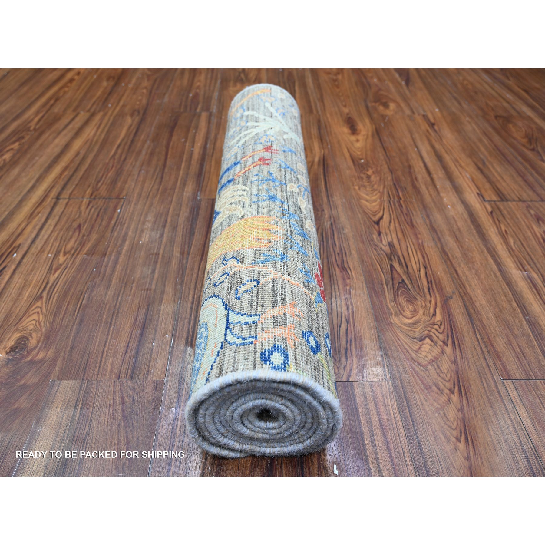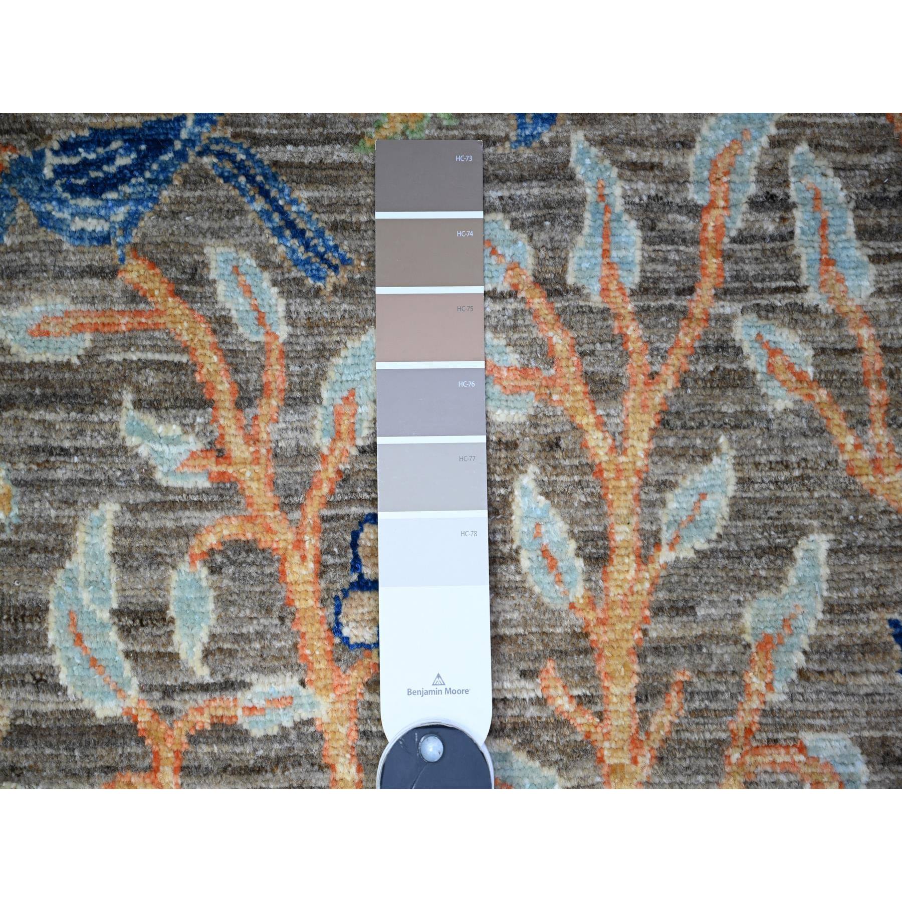 2’7″x10′ Best Gray, Afghan Peshawar with Birds of Paradise design Vegetable Dyes, Hand Knotted, Organic Wool, Runner Oriental Rug Sh74730