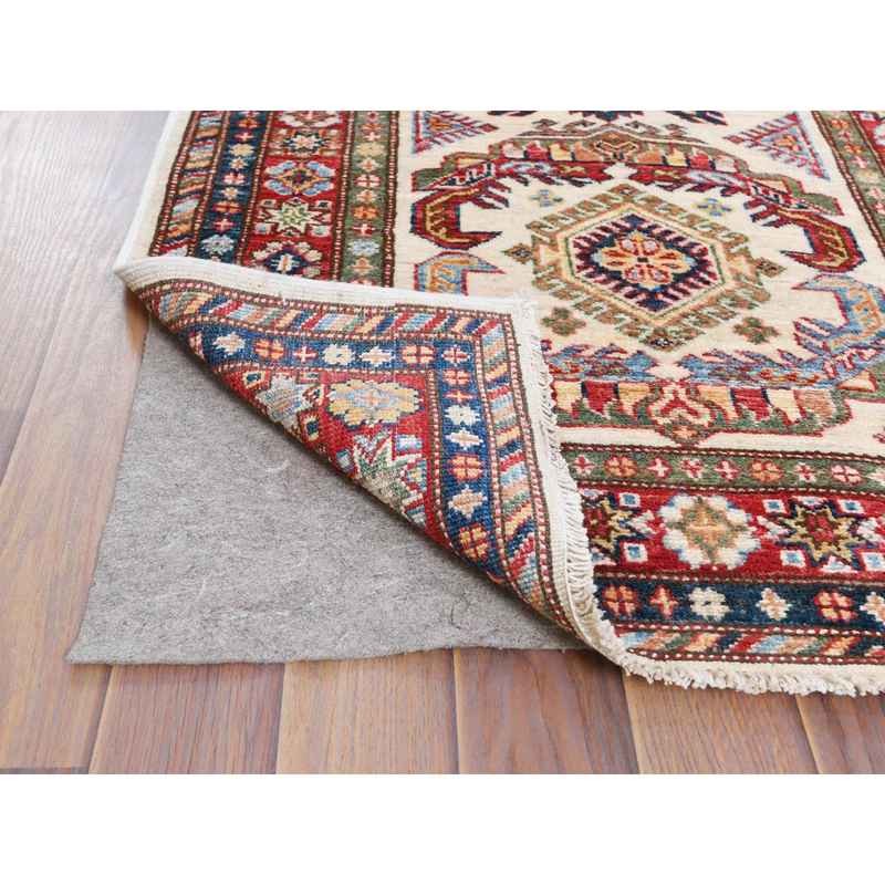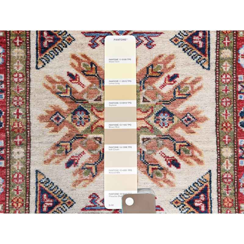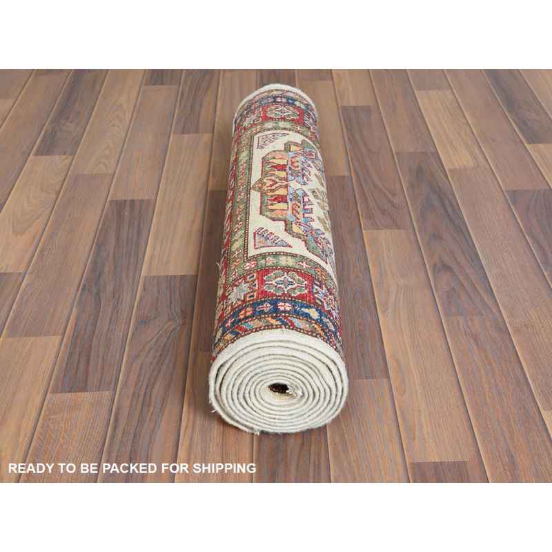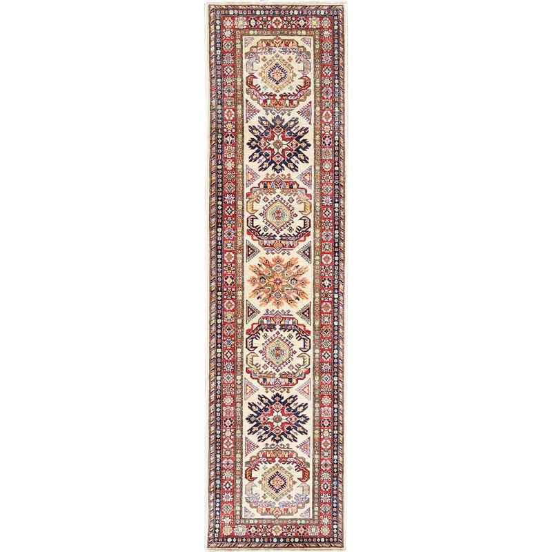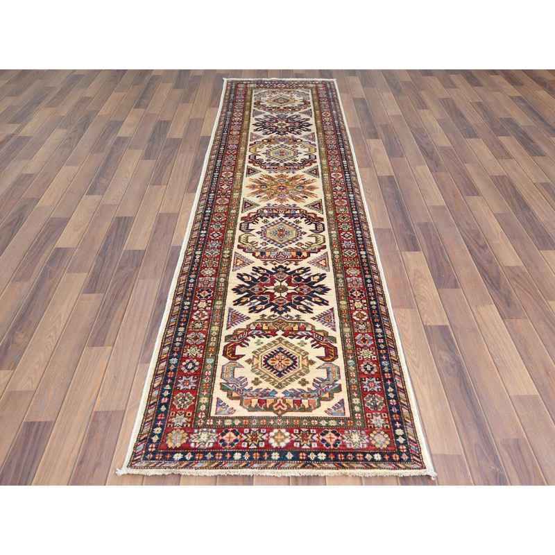 2’7″x10′ Ivory Afghan Super Kazak In a Colorful Pattern Shiny Wool Hand Knotted Oriental Runner Rug Sh61450