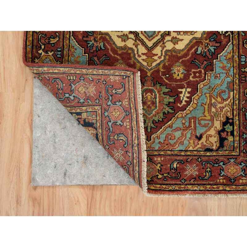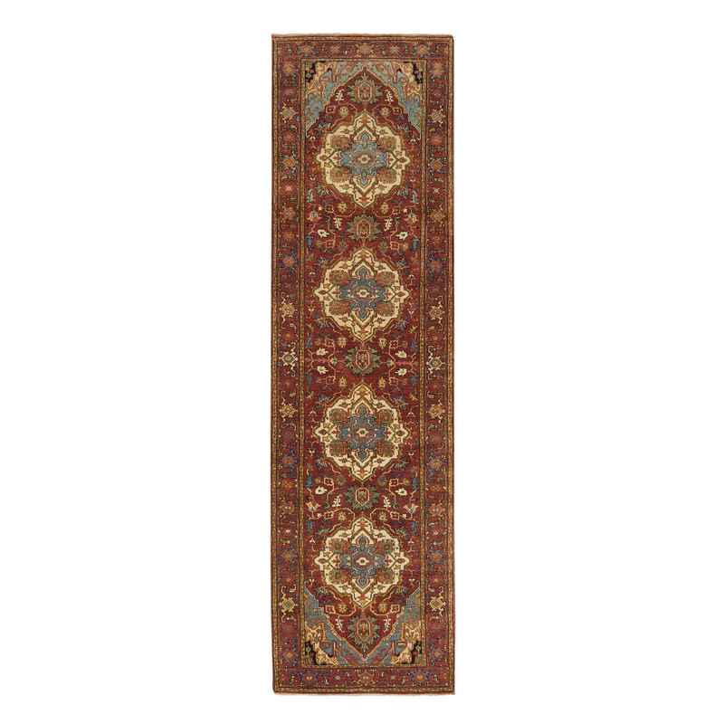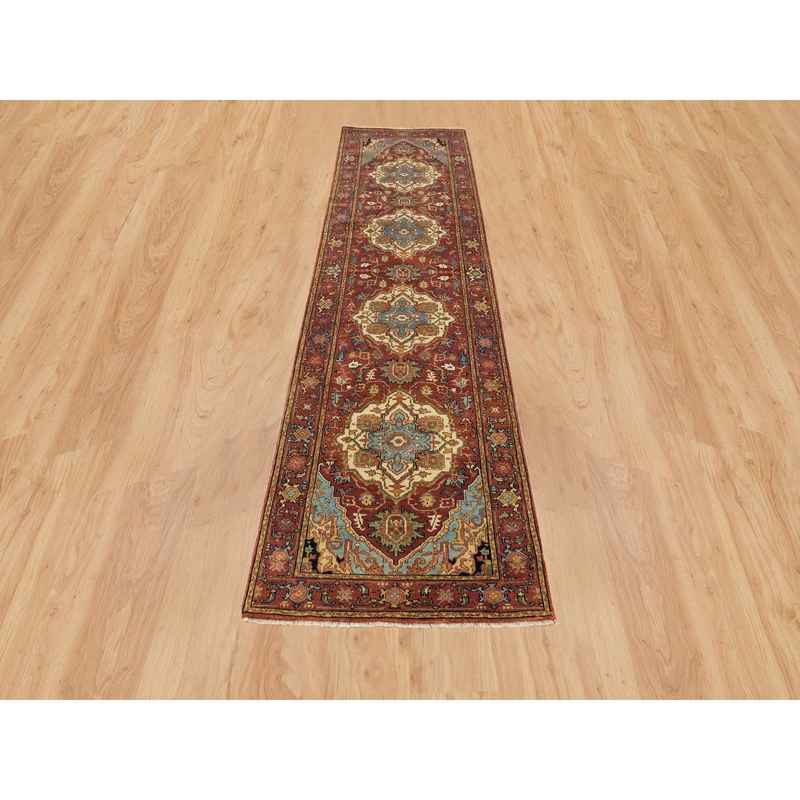 2’7″x10′ Terracotta Red, Hand Knotted, Antiqued Fine Heriz Re-Creation, Densely Woven, Natural Dyes, Extra Soft Wool, Runner Oriental Rug Sh65503