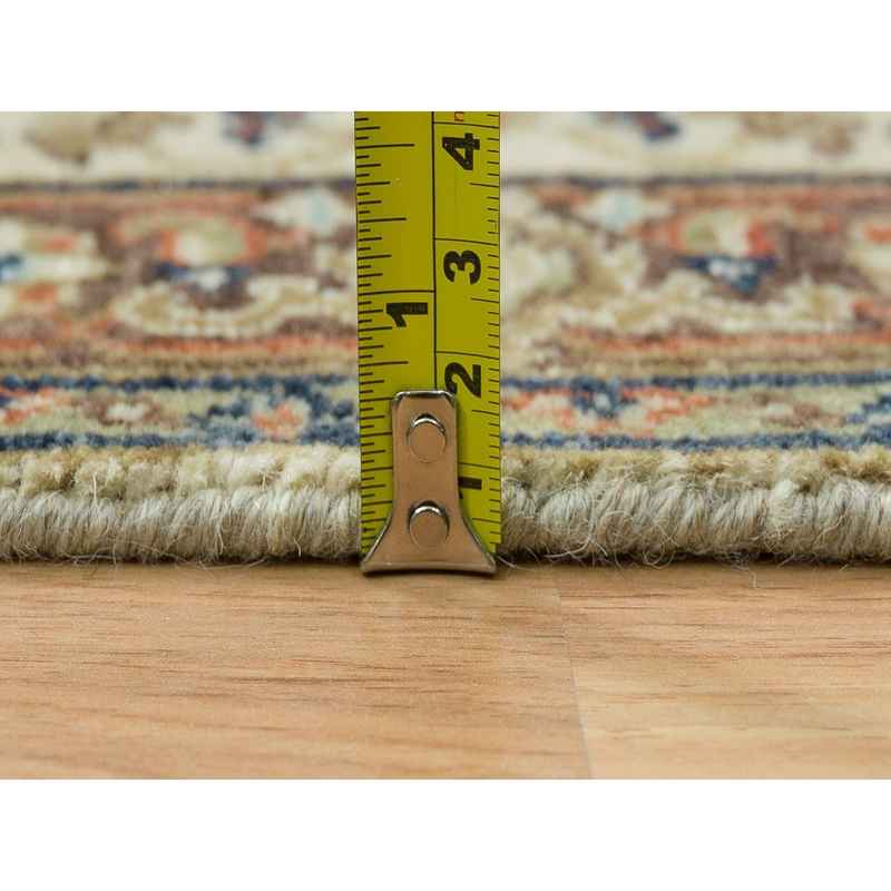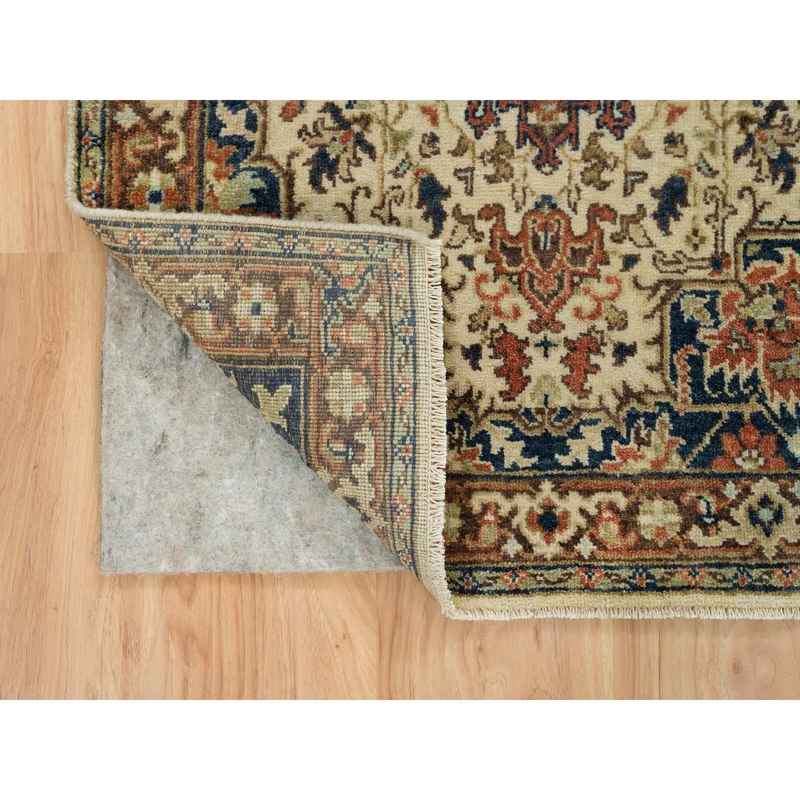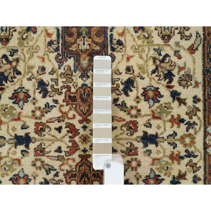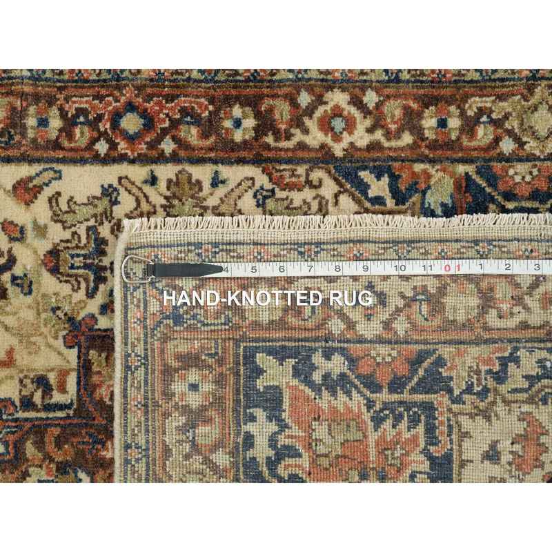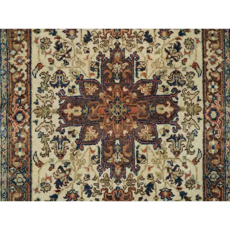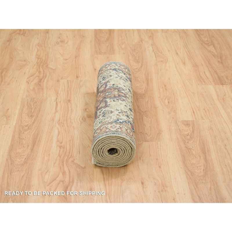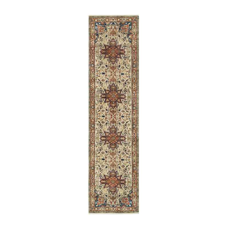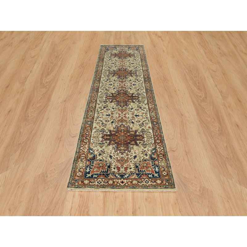 2’7″x10’3″ Beige, Antiqued Heriz Re-Creation with Geometric Medallions, Extra Soft Wool, Hand Knotted, Runner Oriental Rug Sh65713