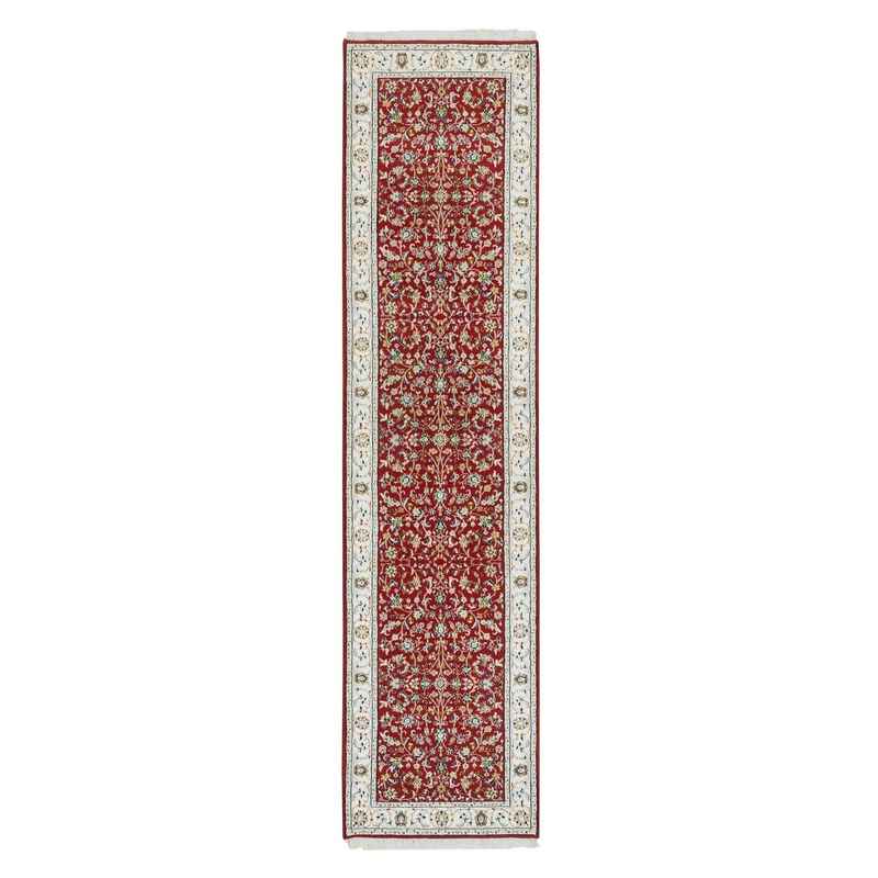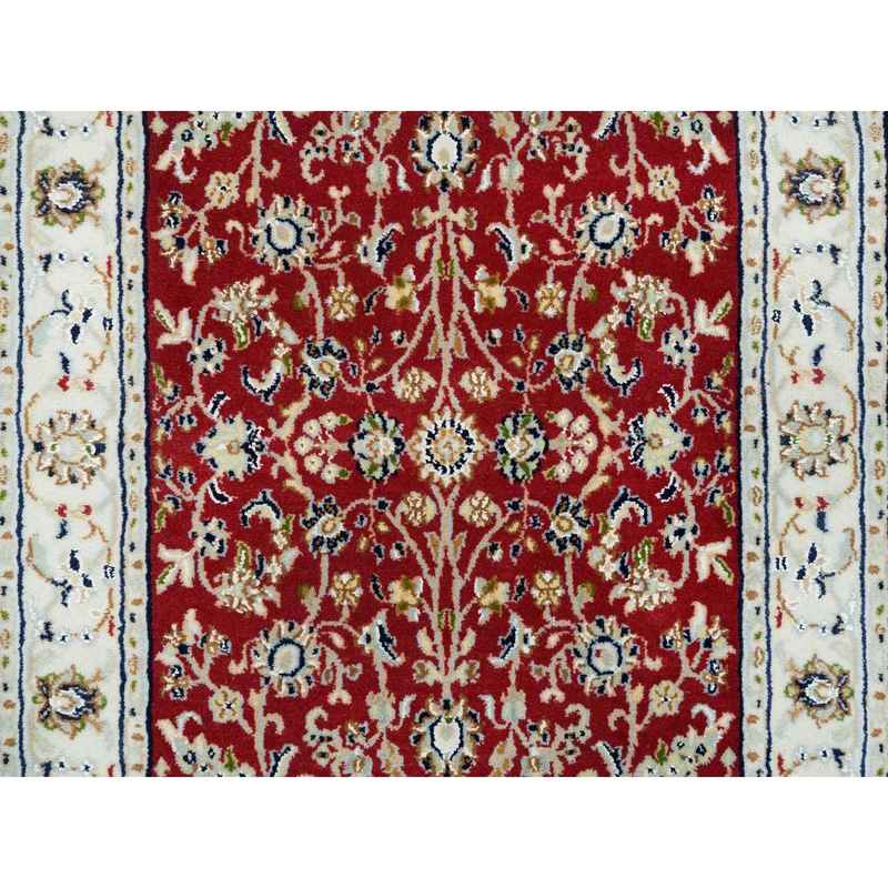 2’7″x10’5″ Cherry Red, Hand Knotted Nain with All Over Flower Design, 250 KPSI Extra Soft Wool, Runner Oriental Rug Sh65369