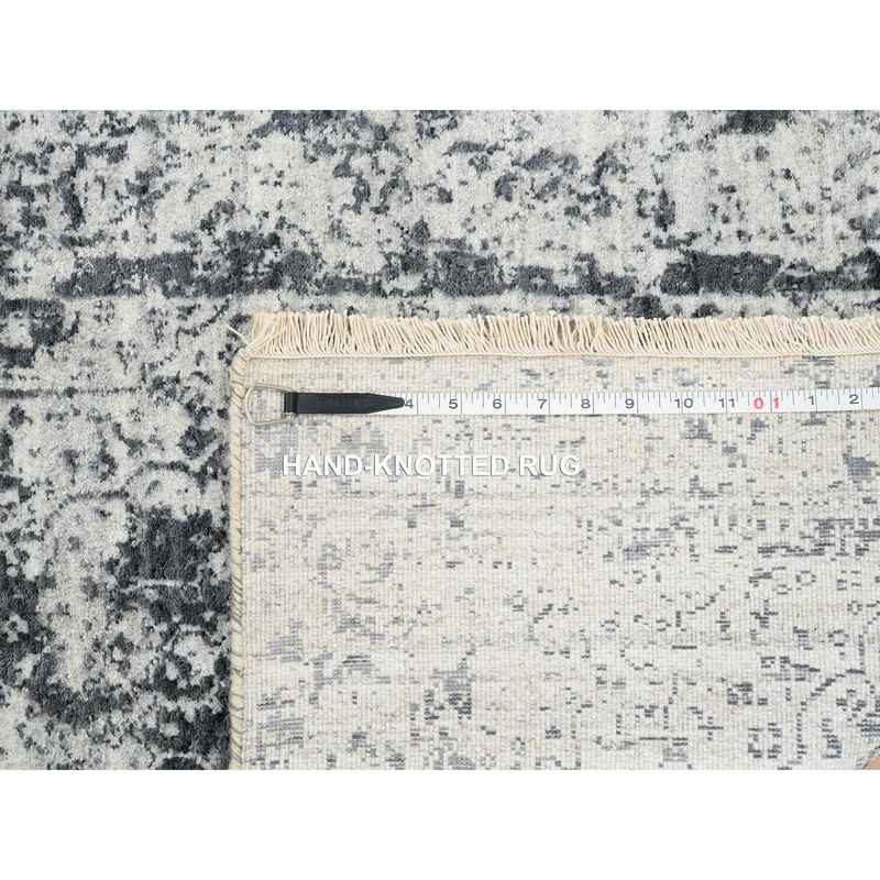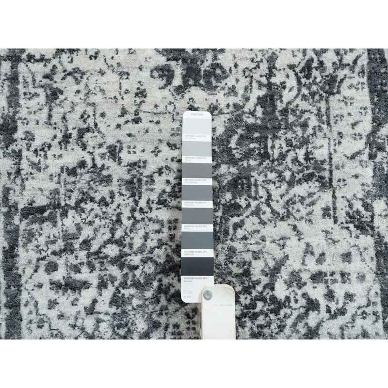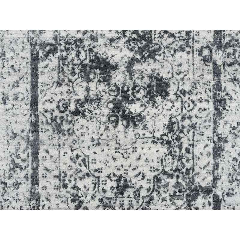 2’7″x12′ Silver Gray, Wool and Silk Hand Knotted, Erased Persian Design, Runner Oriental Rug Sh64837
