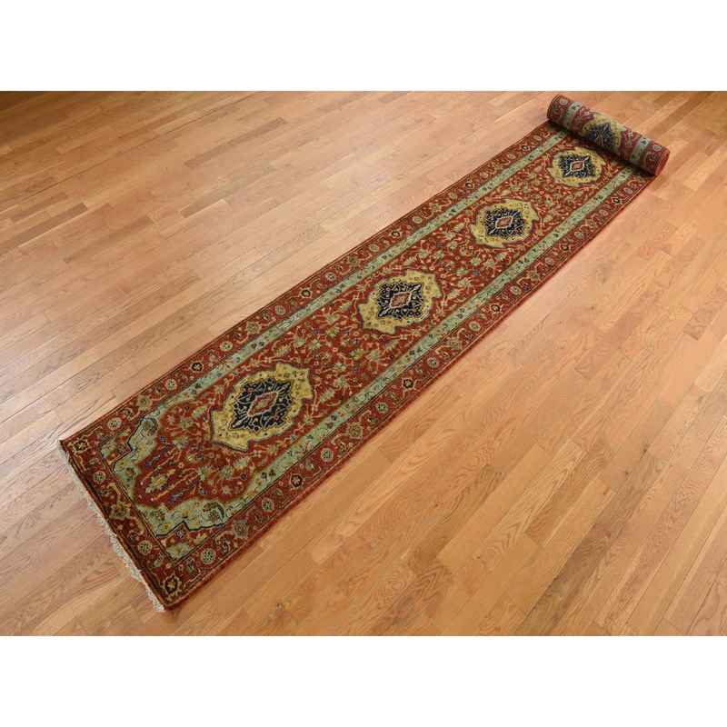 2’7″x17’7″ Lava Falls Red, XL, Antiqued Heriz, Pure Wool, Hand Knotted, Runner Oriental Rug Sh78209