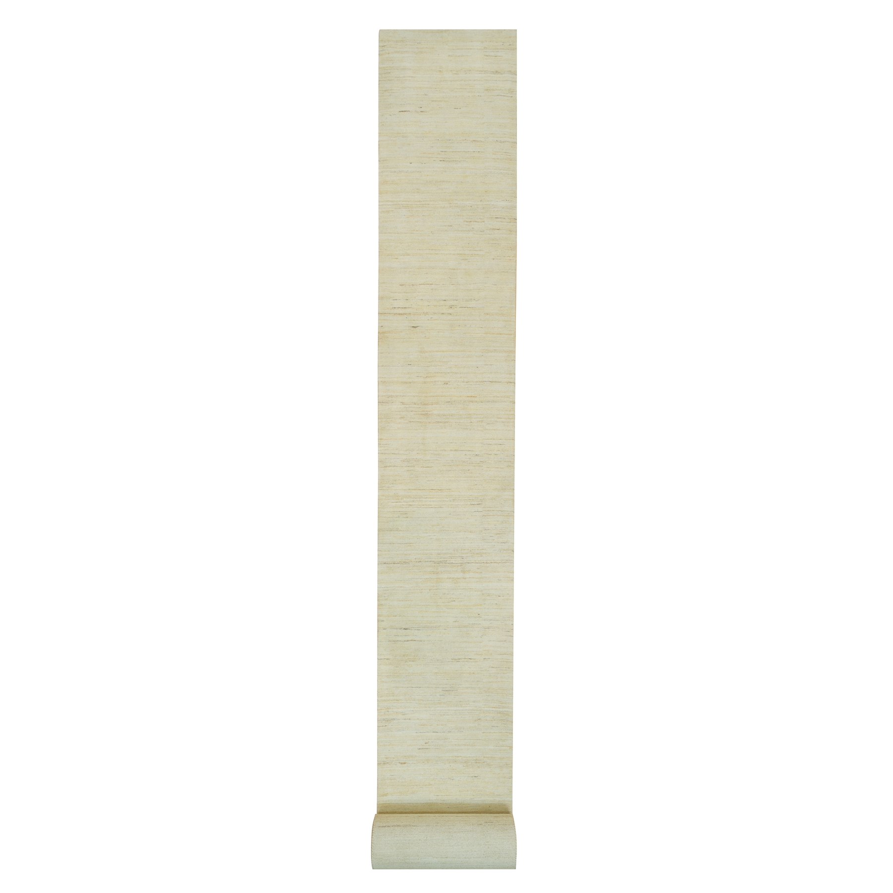 2’7″x25’1″ Aged White, Persian Wool, Hand Knotted, Thick and Plush, Soft to The Touch, Lori Buft Gabbeh, Plain Design, Oriental Rug Sh90405