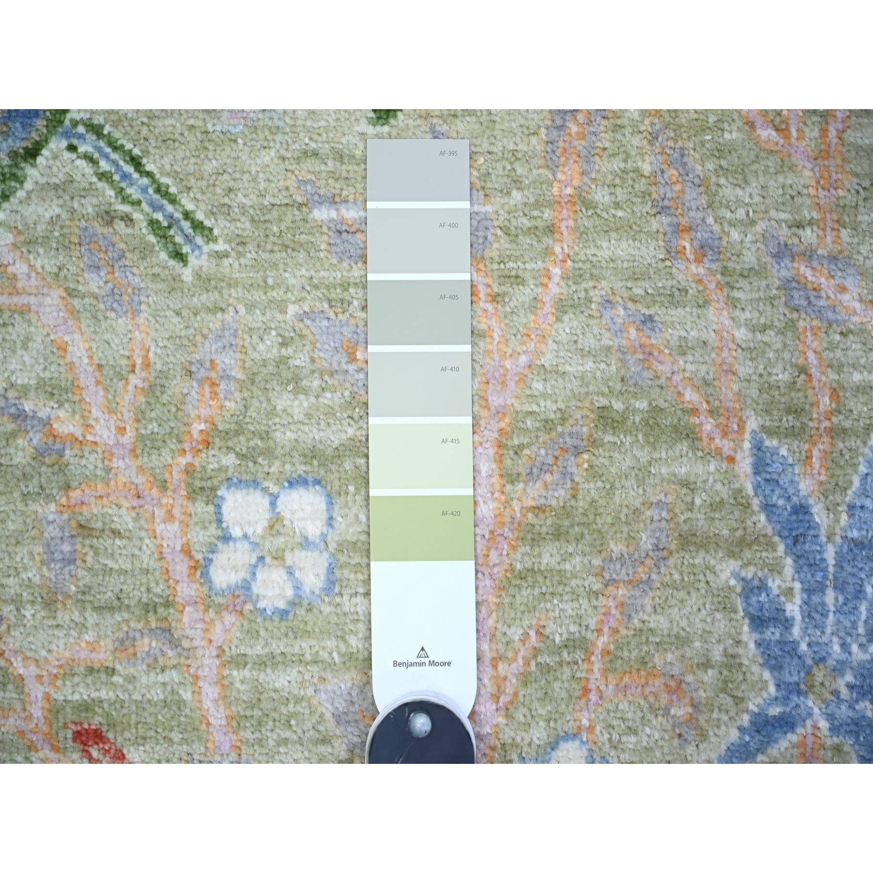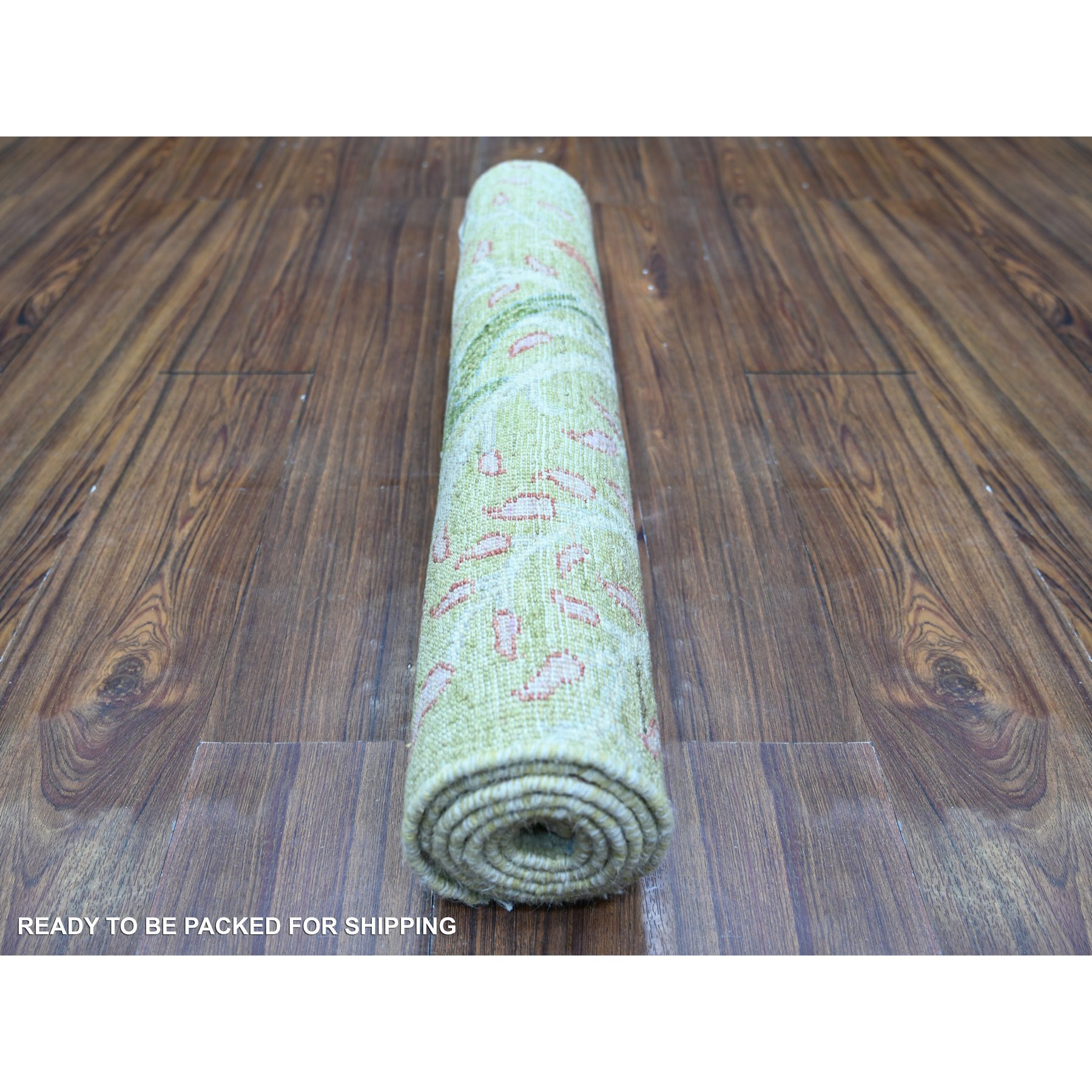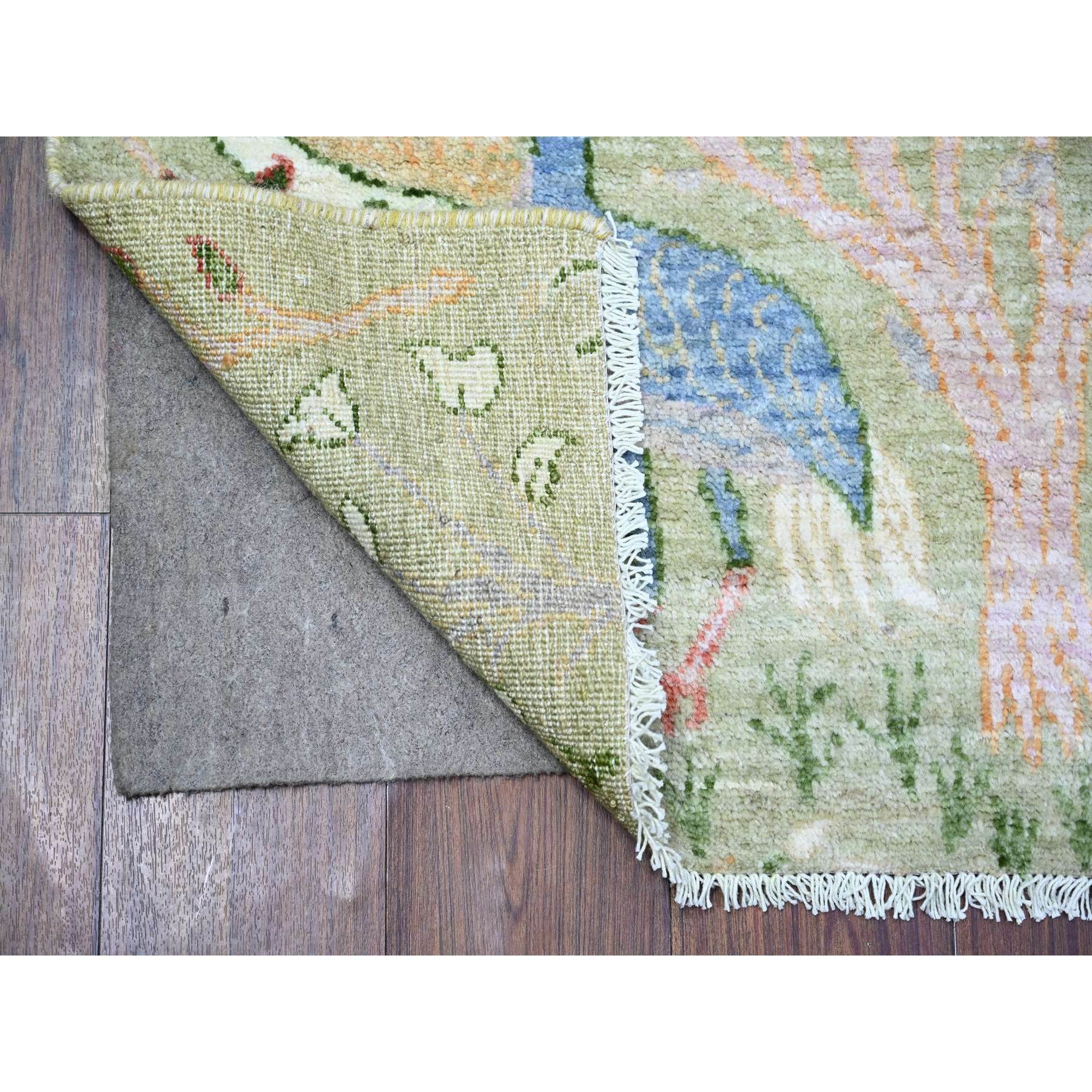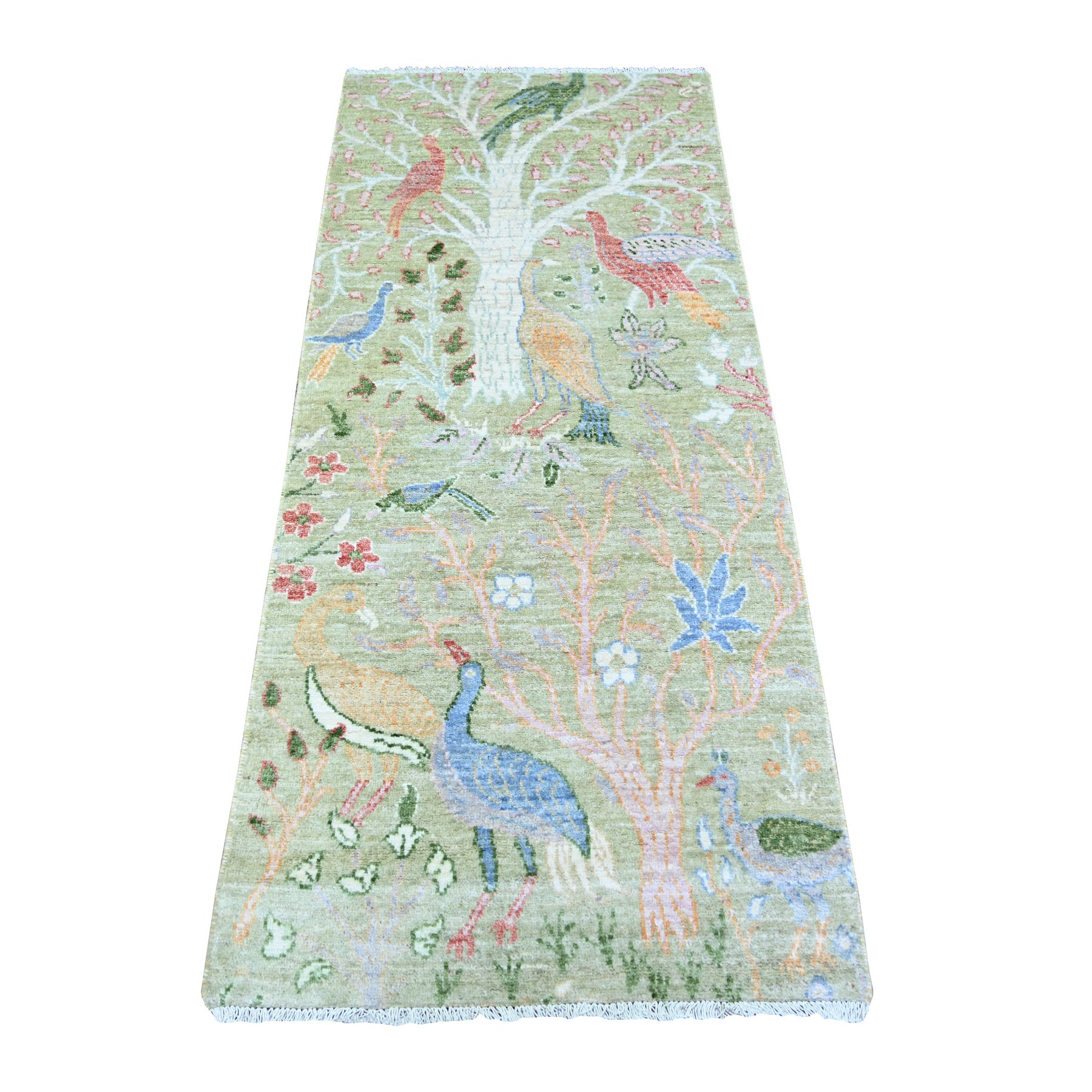 2’7″x6′ Dollar Bill Green, Afghan Peshawar with Birds of Paradise Design, Vegetable Dyes, Extra Soft Wool, Hand Knotted, Short Runner Oriental Rug Sh74427