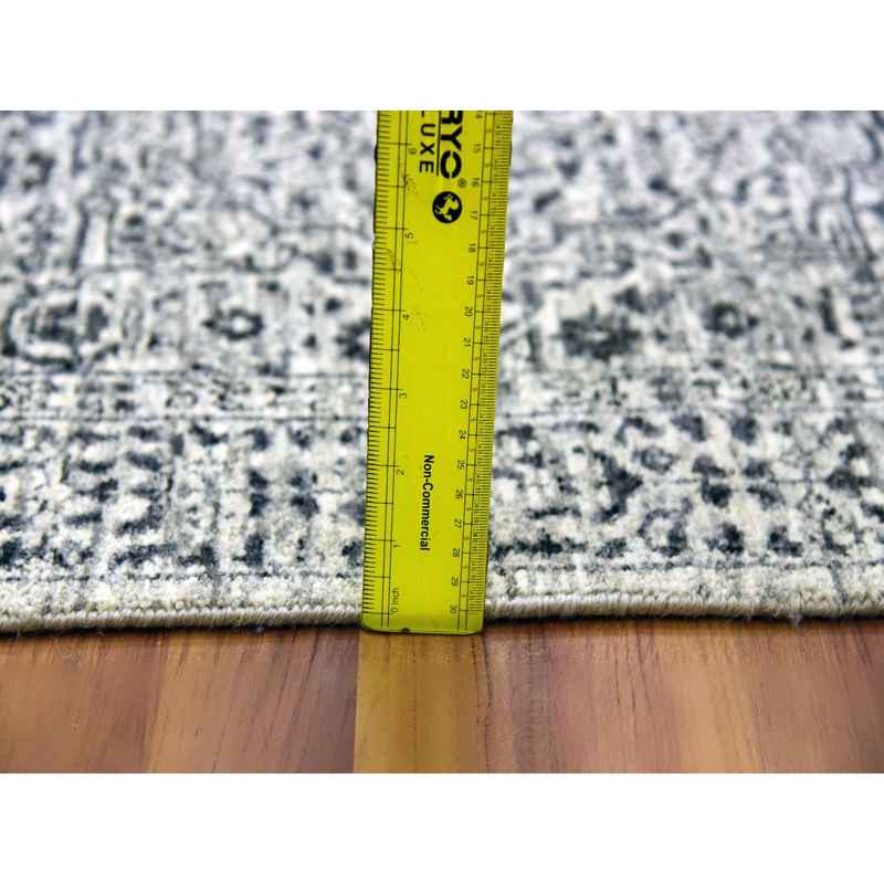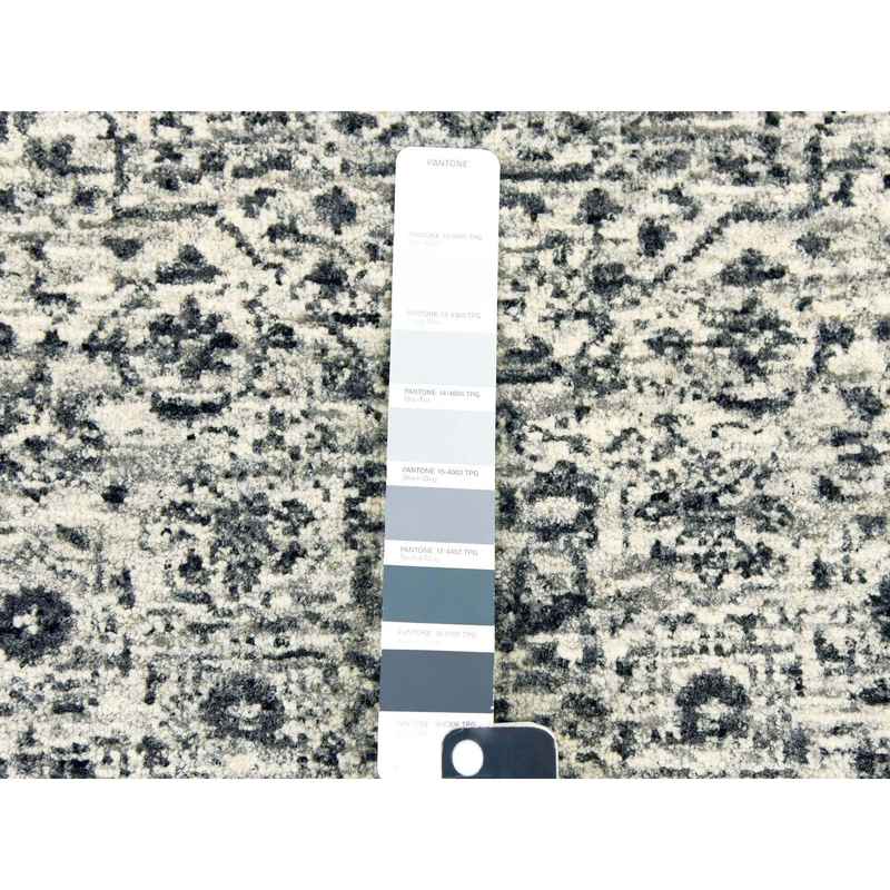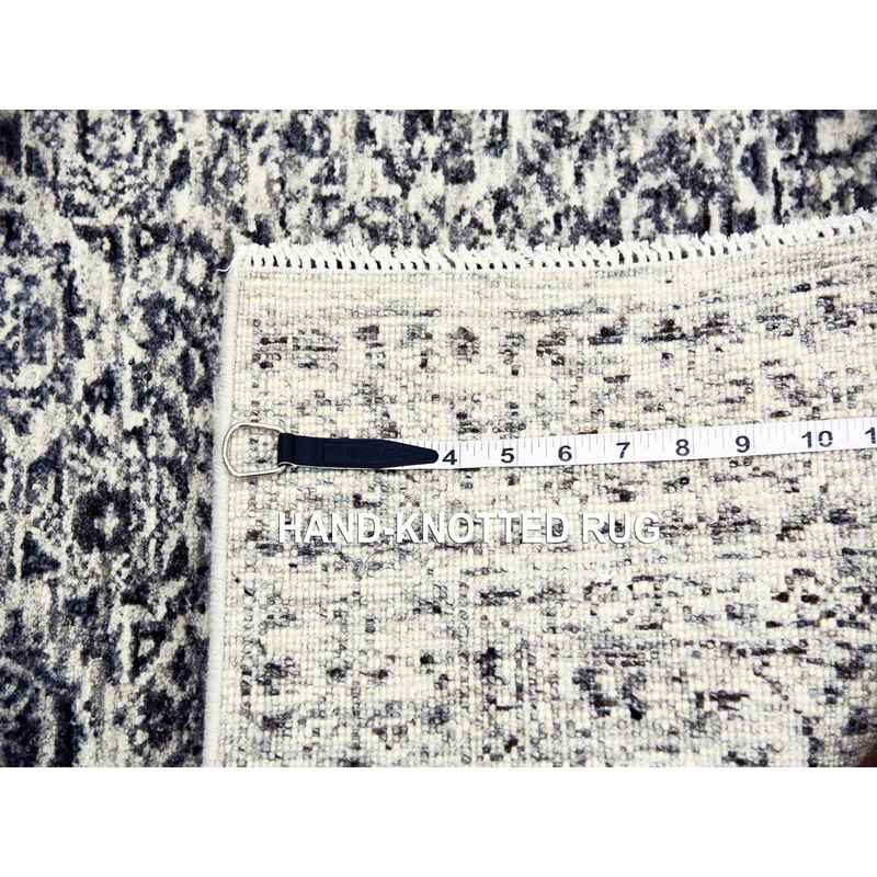 2’7″x6′ Ghost White, Mamluk Dynasty, Tone on Tone Design, Undyed 100% Wool, Hand Knotted, Runner Oriental Rug Sh79502