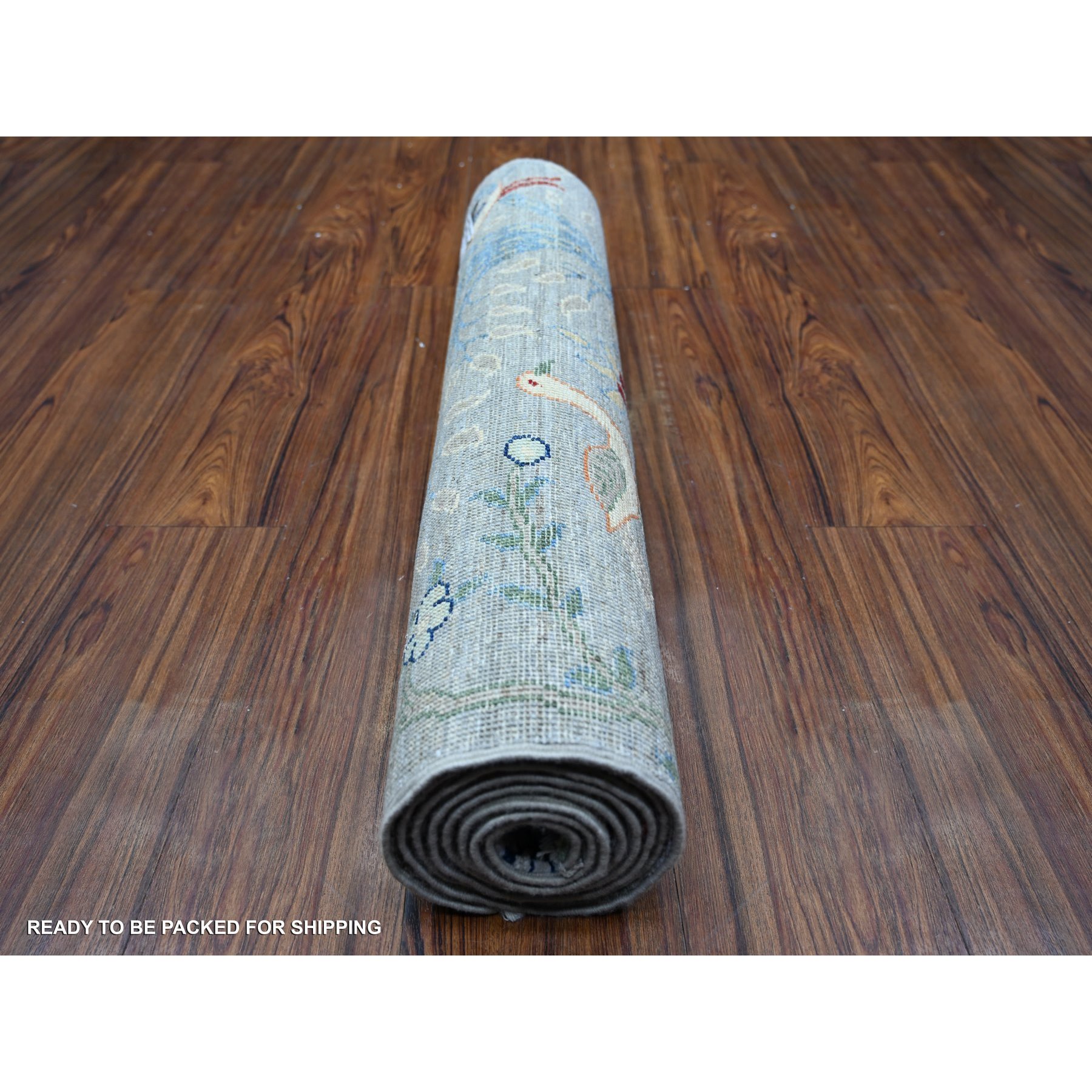 2’7″x7’10” Coin Gray, Afghan Peshawar with Birds of Paradise Tree of Life Design, Abrash, Natural Wool, Hand Knotted, Runner Oriental Rug Sh74531