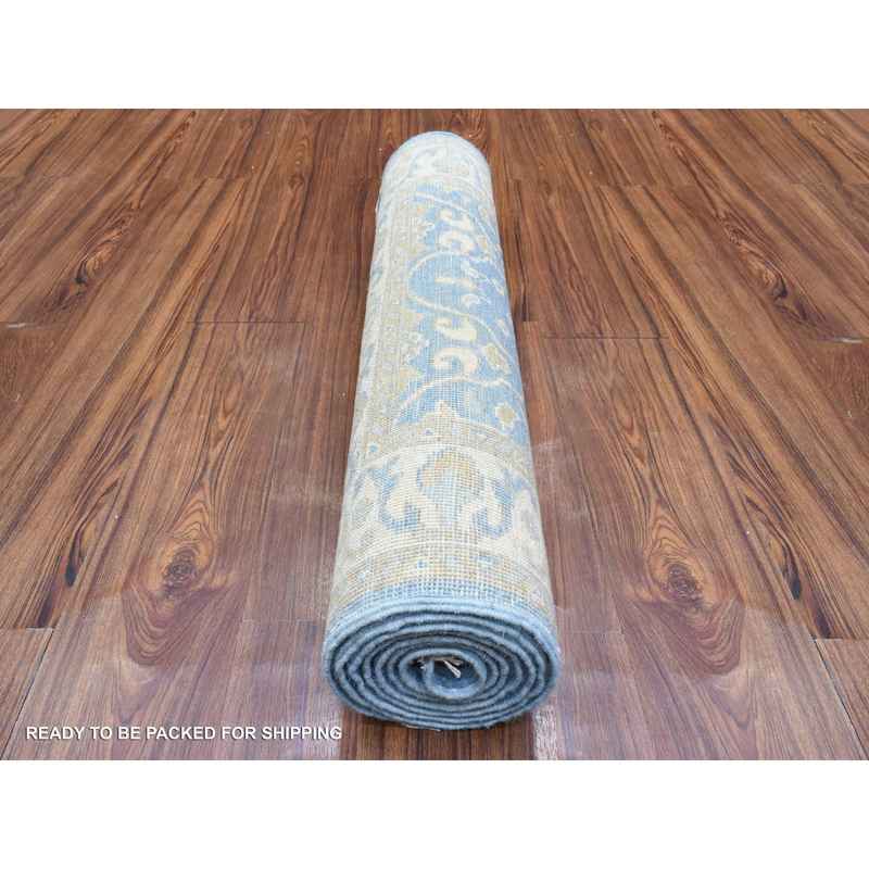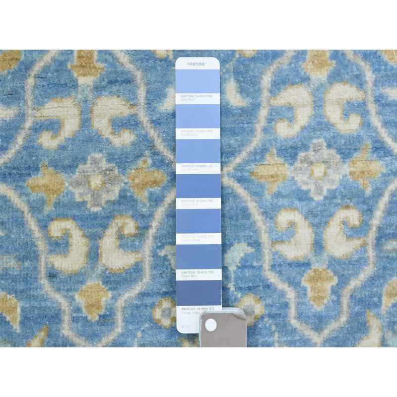 2’7″x7’7″ Light Blue, Fine Peshawar with Ziegler Mahal Design, Natural Dyes Densely Woven, Velvety Wool Hand Knotted, Runner Oriental Rug Sh72538