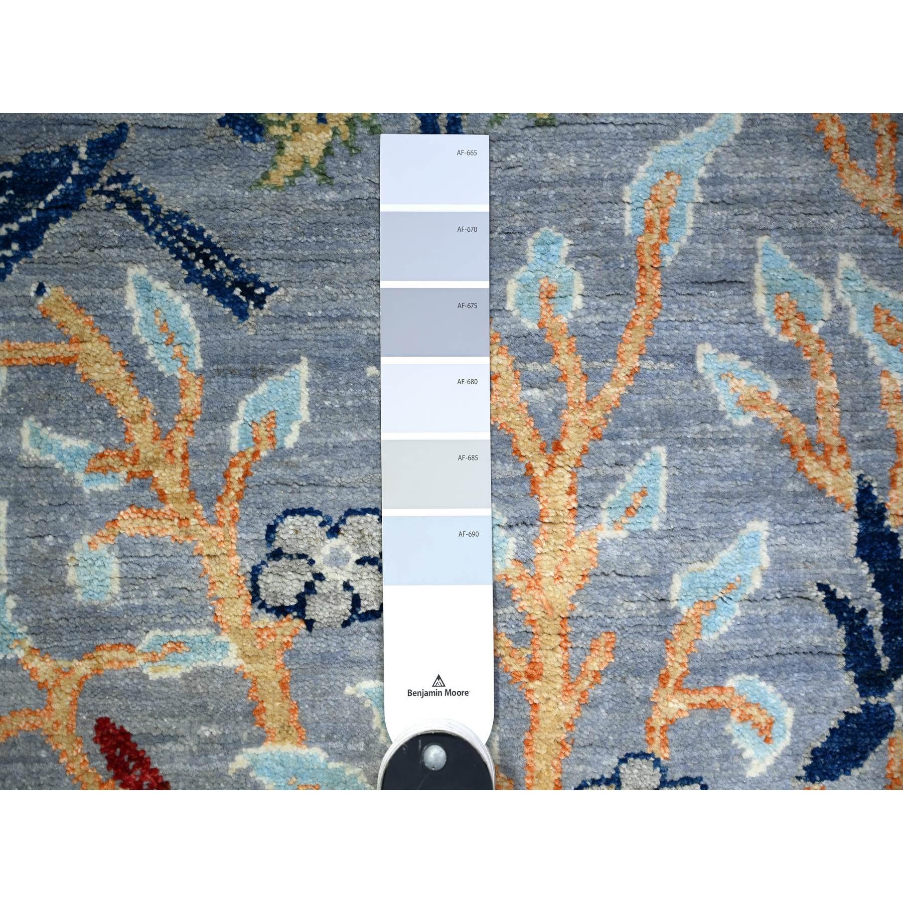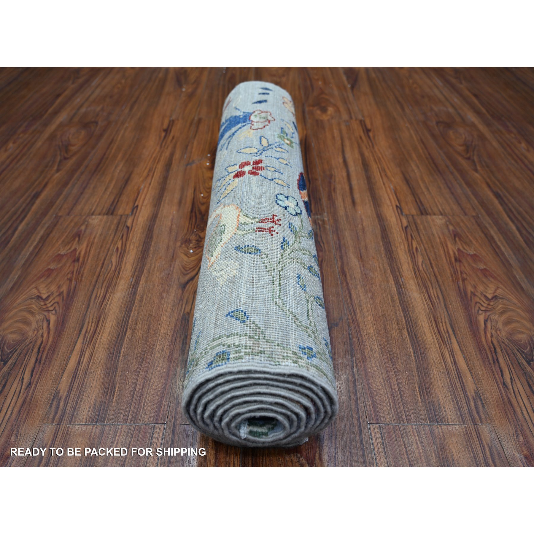 2’7″x7’8″ Oxford Gray, Afghan Peshawar with Birds of Paradise Design, Abrash, Vegetable Dyes, 100% Wool, Hand Knotted, Runner Oriental Rug Sh74533
