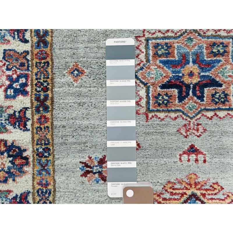2’7″x8’5″ Ash Gray, Soft Wool Hand Knotted, Afghan Super Kazak with geometric Medallions, Natural Dyes Densely Woven, Runner Oriental Rug Sh82732