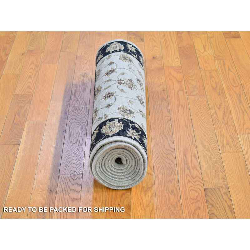 2’7″x9’10” Ivory Rajasthan Half Wool and Half Silk Floral Design Thick and Plush Hand Knotted Runner Oriental Rug Sh66769