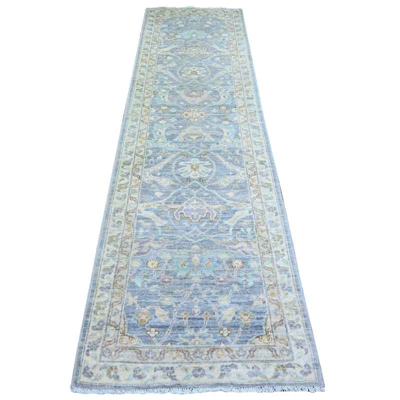 2’7″x9’6″ Aegean Blue, Finer Peshawar with All Over Design, Natural Dyes, Extra Soft Wool, Hand Knotted, Runner Oriental Rug Sh74135