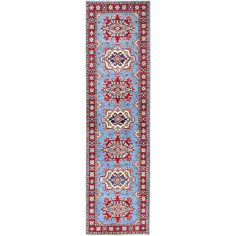 2’7″x9’7″ Intel Blue, Hand Knotted Natural Dyes, Pure Wool Densely Woven, Kazak With Motifs Oriental Runner Rug Sh86286
