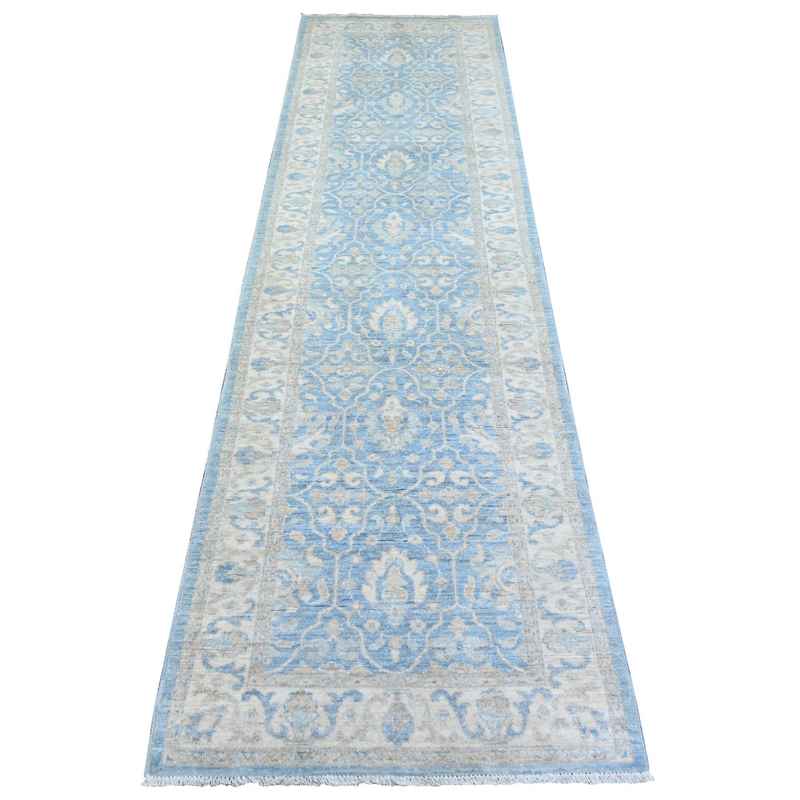 2’7″x9’8″ Beau Blue, Natural Dyes Finer Peshawar with Soft Colors, 100% Wool Hand Knotted, Runner Oriental Rug Sh73688