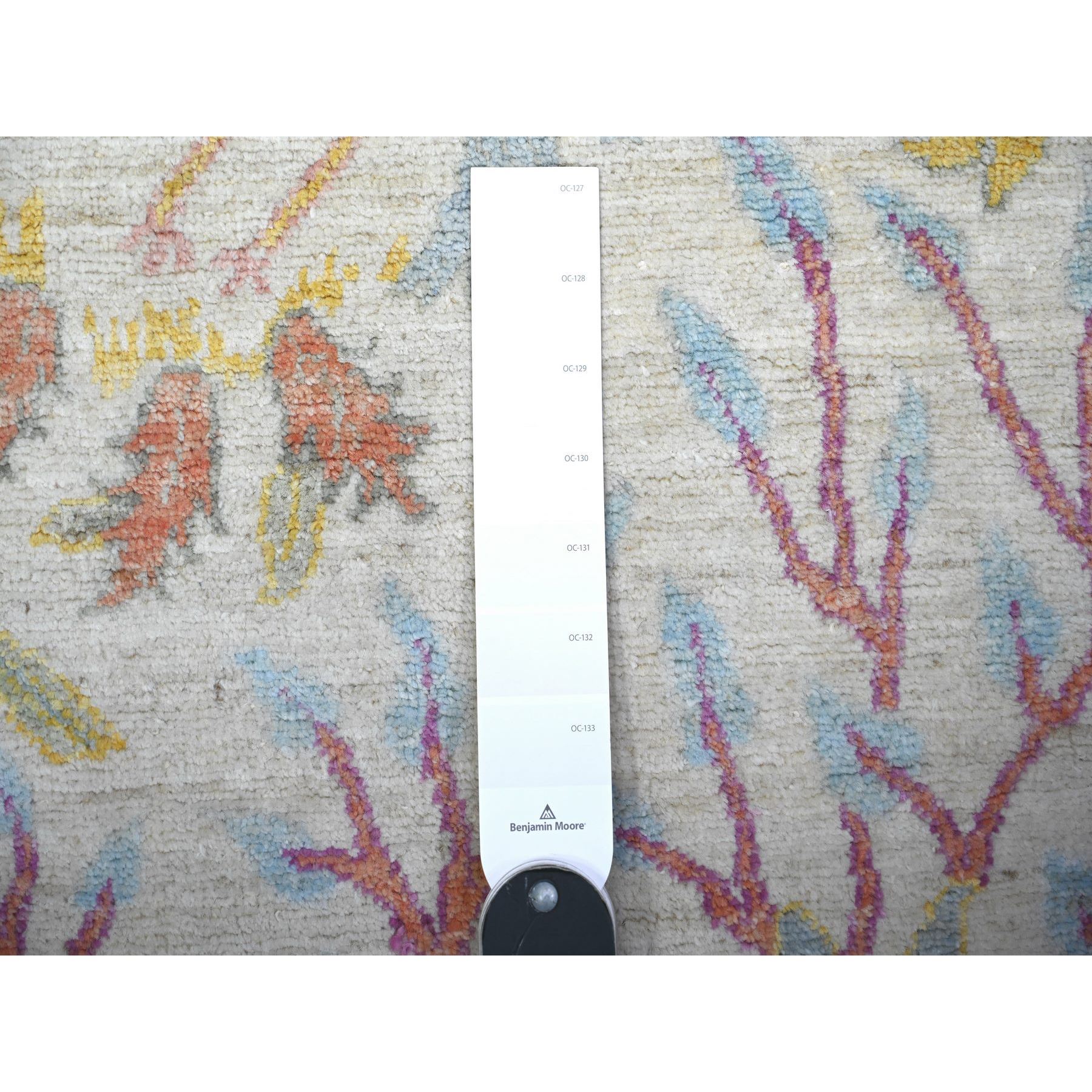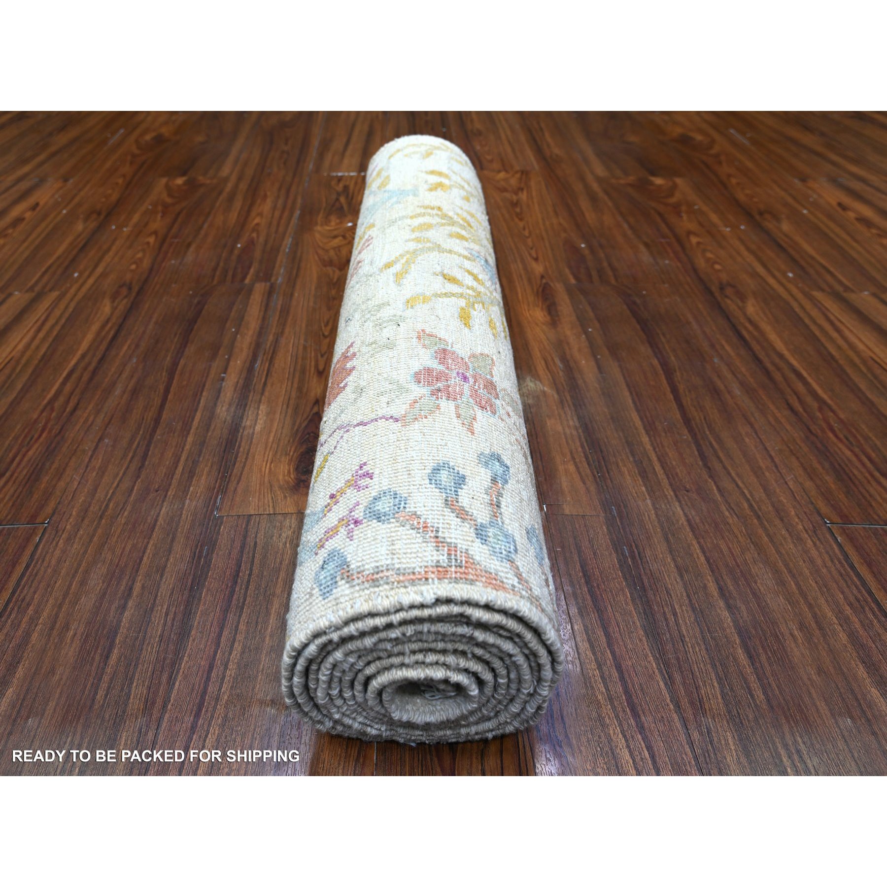 2’7″x9’8″ Feather White, Birds of Paradise, Abrash, Hand knotted Pure Wool Afghan Peshawar Area, Vegetable Dyes, Runner Oriental Rug Sh74734