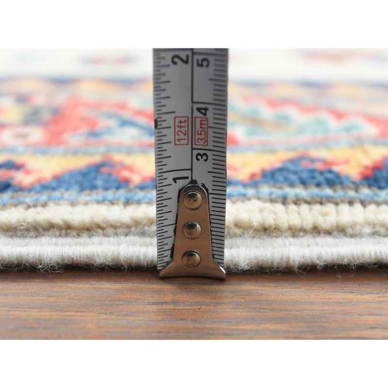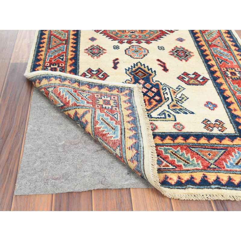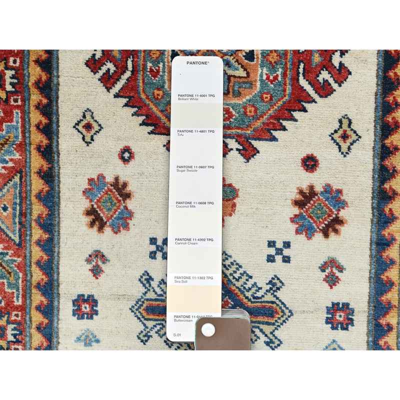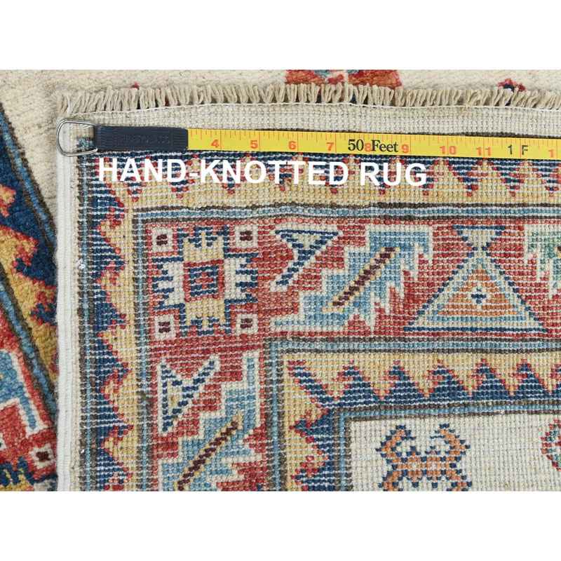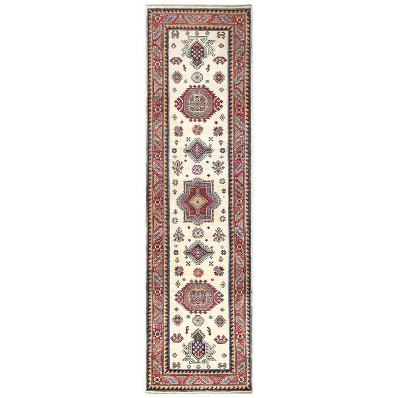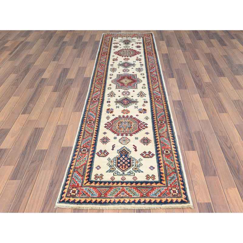 2’7″x9’8″ Pure Wool, Hand Knotted, Ivory, Caucasian Design, Afghan Special Kazak with Tribal Medallions Oriental Runner Rug Sh61826
