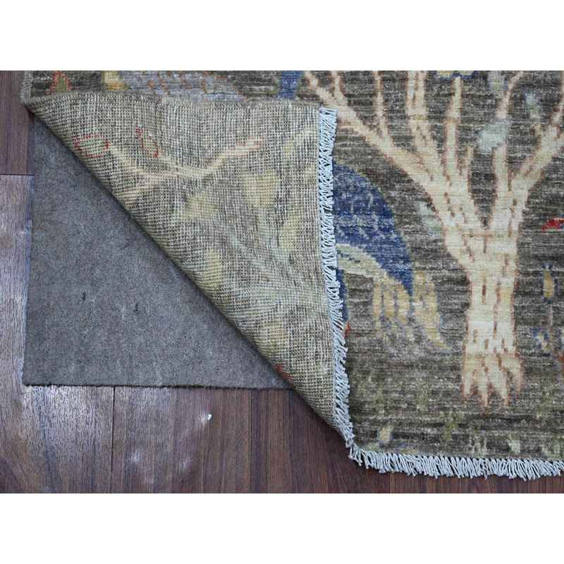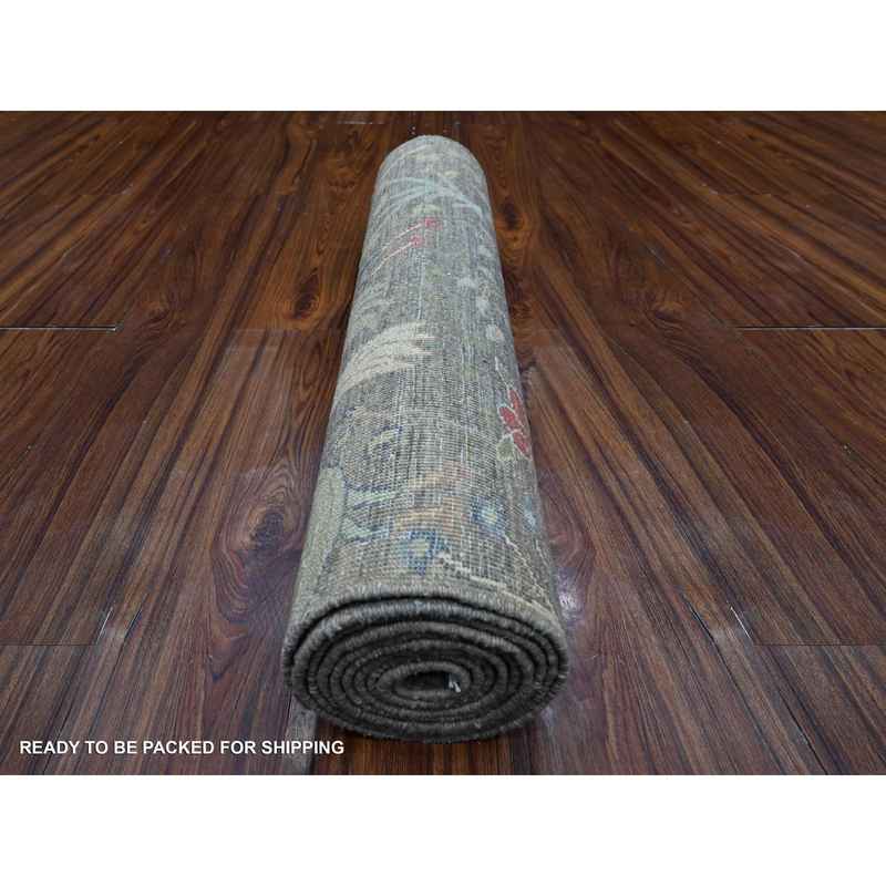 2’7″x9’8″ Shingle Gray, Birds of Paradise Design, Afghan Peshawar, Pure Wool, Natural Dyes, Hand Knotted, Abrash, Runner Oriental Rug Sh89055