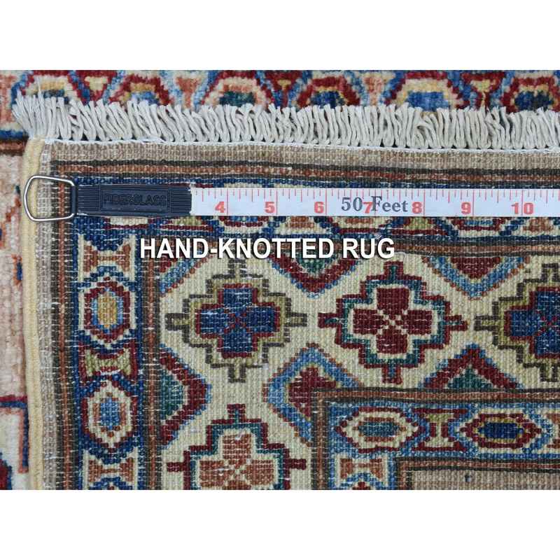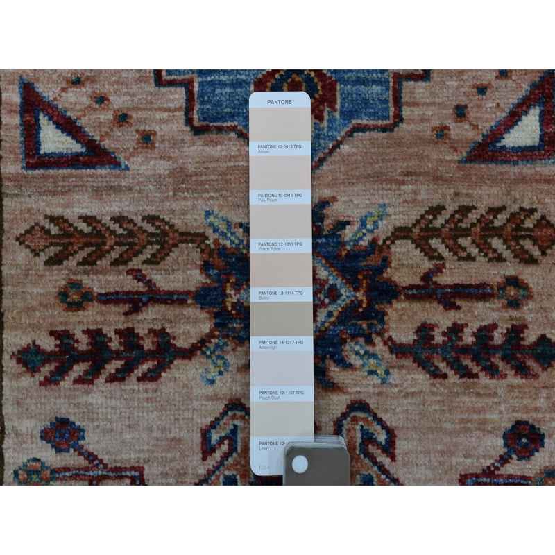 2’7″x9’8″ Super Kazak with Tribal Medallions Design Light Brown Pure Wool Hand Knotted Oriental Runner Rug Sh68173