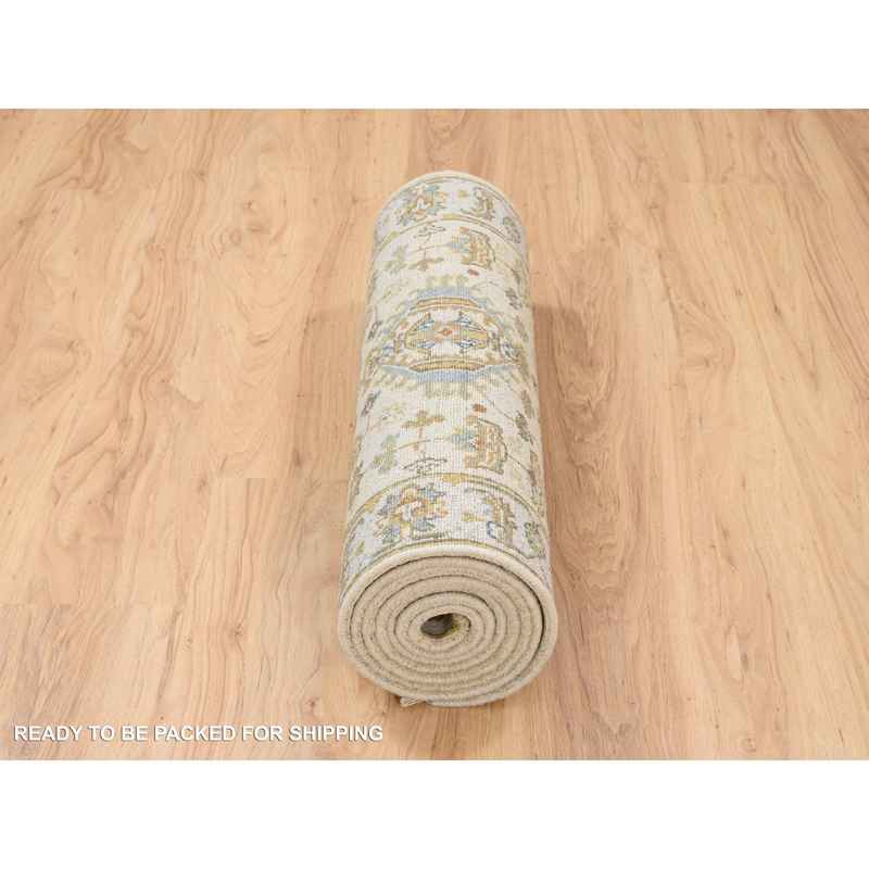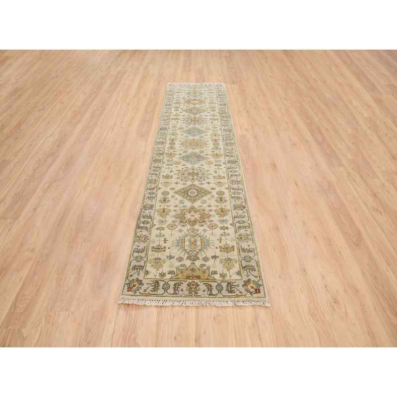 2’7″x9’9″ Ivory, Karajeh Design, Soft Pure Wool, Hand Knotted, Oriental Runner Rug Sh63665