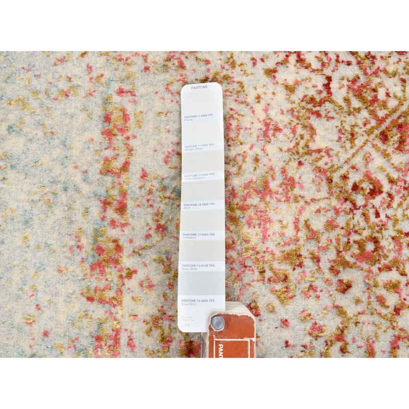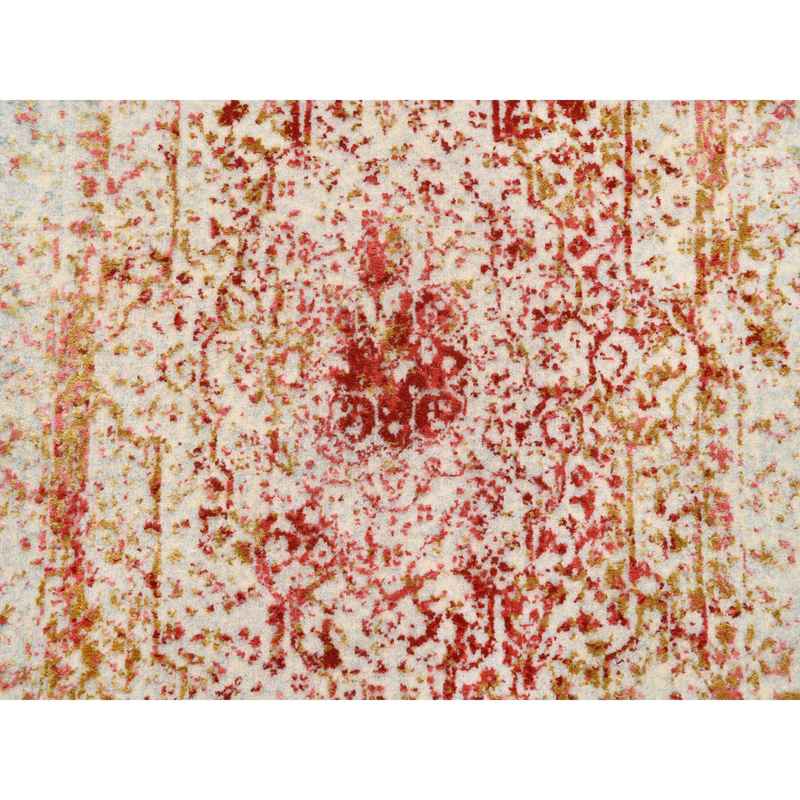 2’7″x9’9″ Persian Erased Medallion Design Wool and Pure Silk Hand Knotted Pink Oriental Runner Rug Sh63464