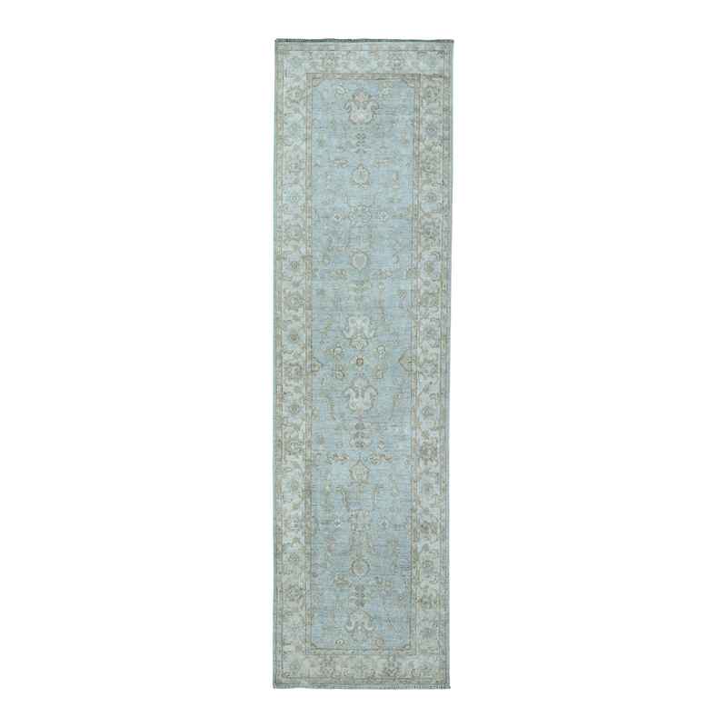 2’7″x9’9″ White Wash Peshawar Pure Wool Hand-Knotted Runner Oriental Rug Sh51642