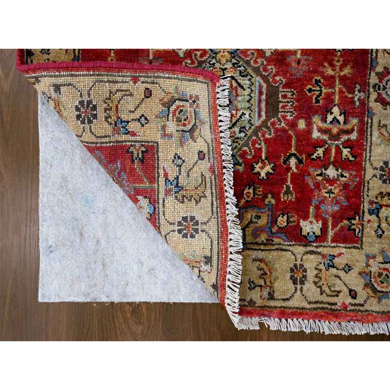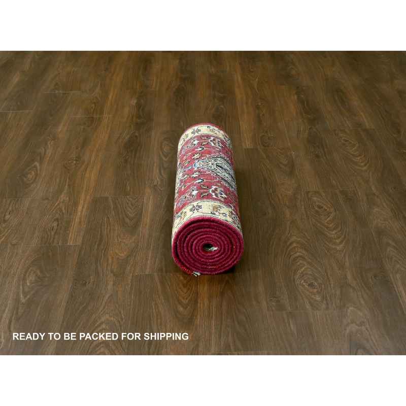 2’8″x10′ Auburn Red and Gold, Hand Knotted, Organic Wool, Karajeh Design, Runner, Soft to the Touch Pile, Oriental Rug Sh84519